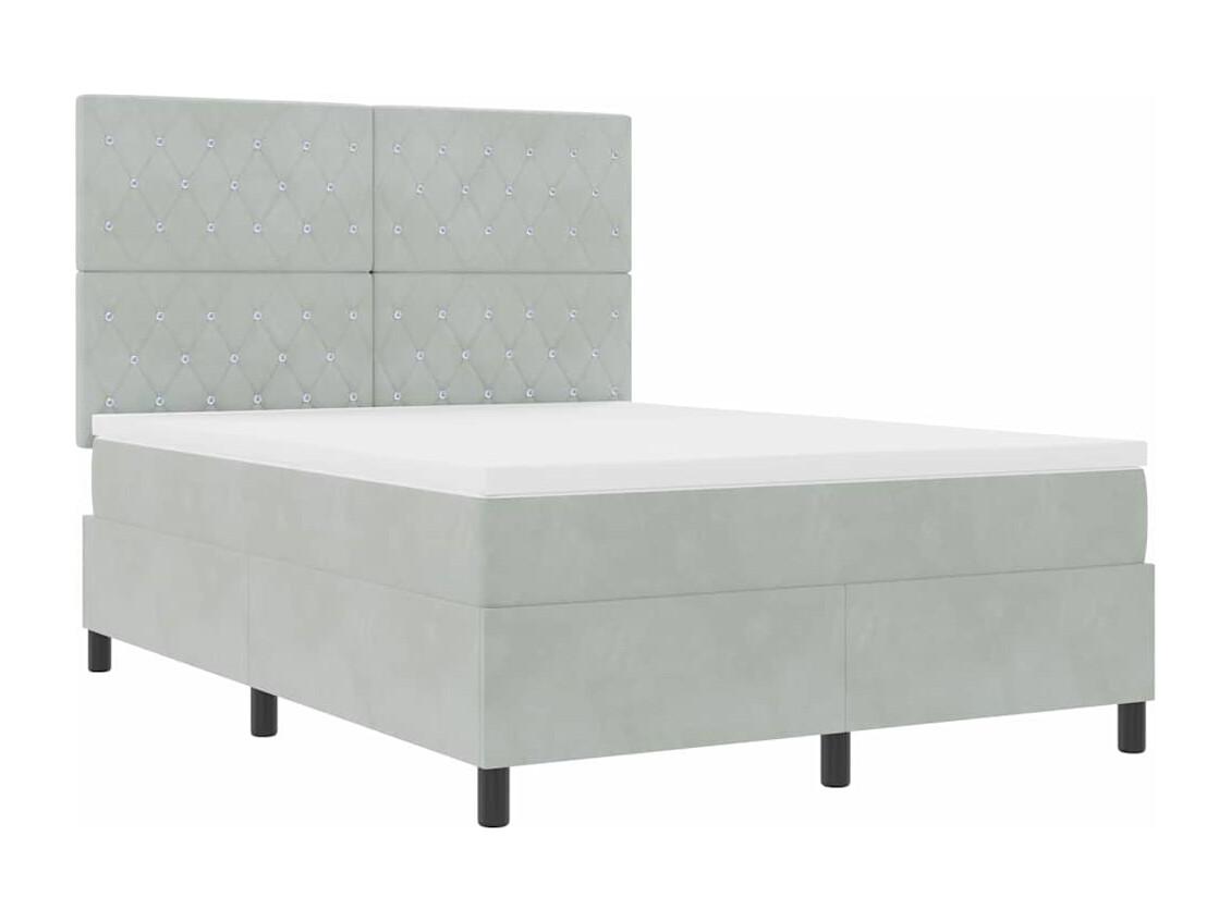 Cama Box com cabeceira Cinzento-claro 160 x 200 cm Veludo