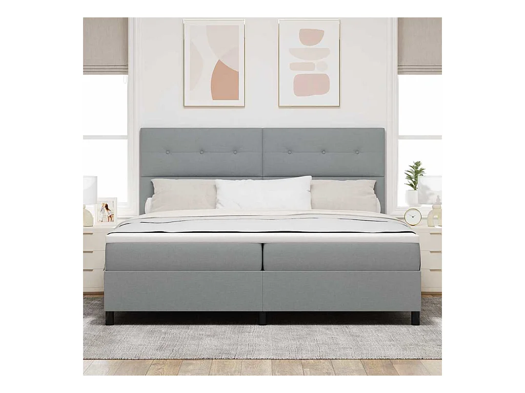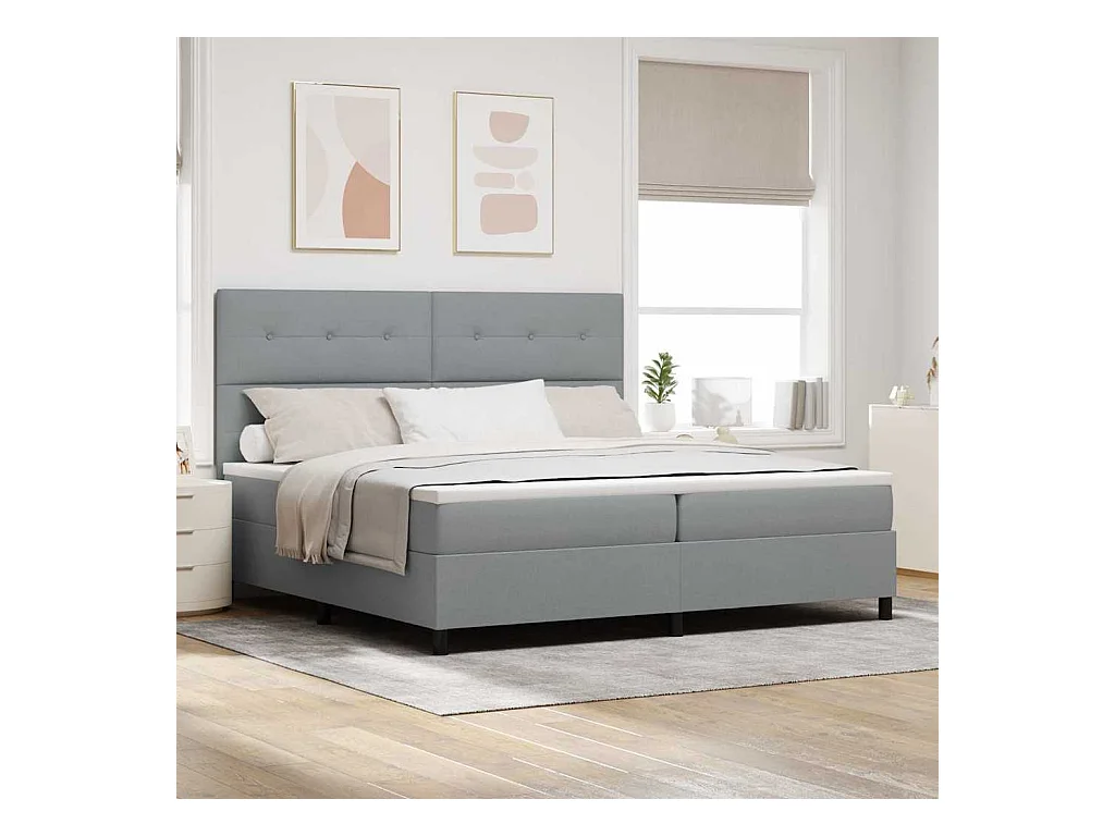 Cama Box com colchão Cinzento-claro 200 x 200 cm tecido