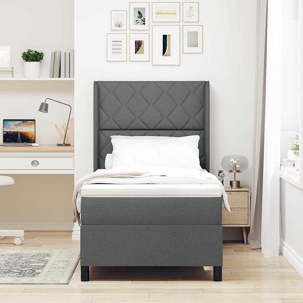 Cama Box com colchão Cinzento escuro 100 x 200 cm tecido