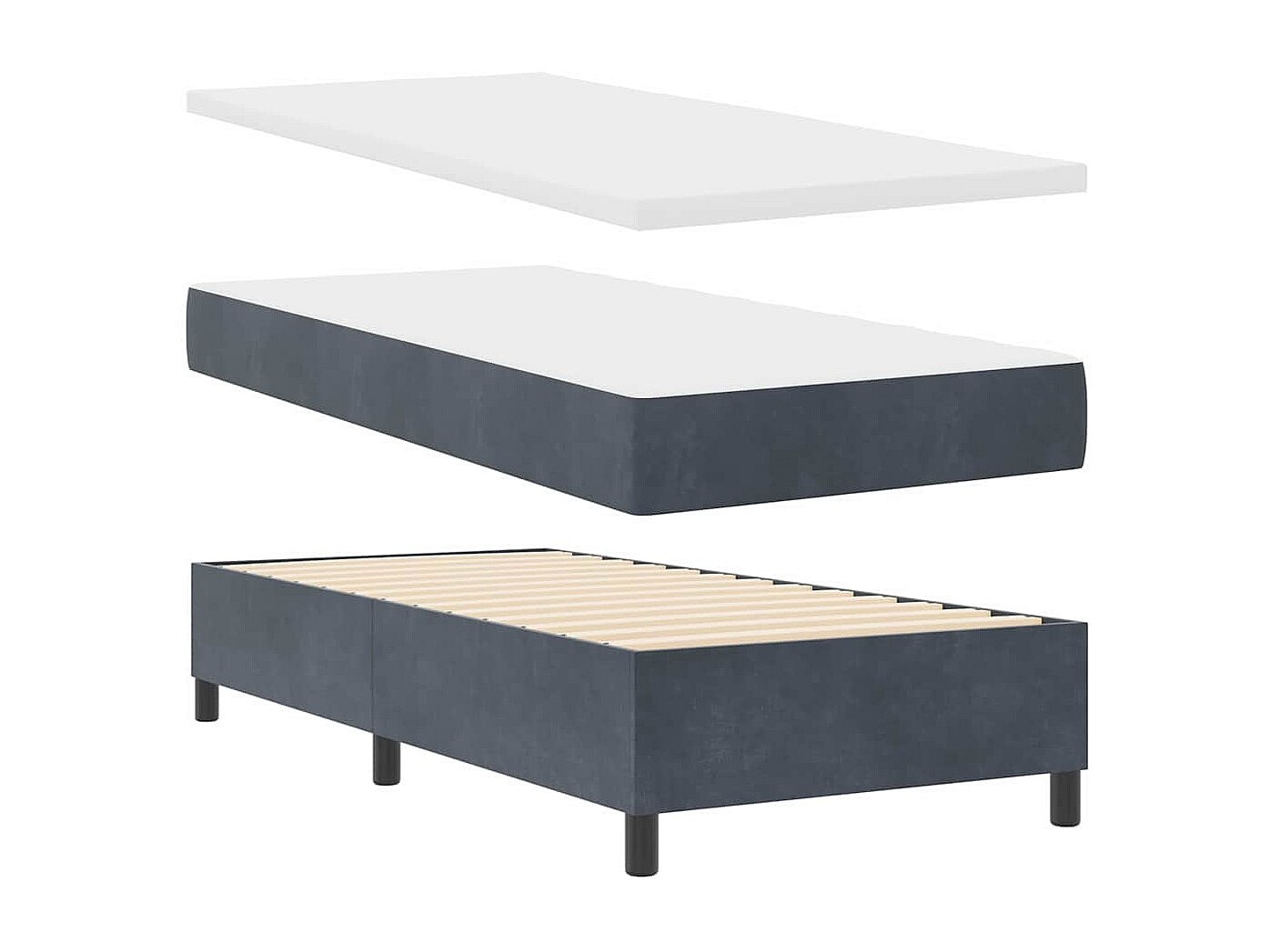 Cama Box com colchão Cinzento escuro 100 x 200 cm Veludo