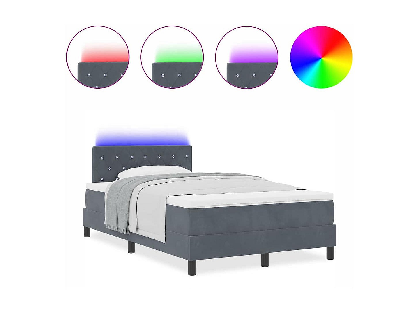 Cama Box com colchão Cinzento escuro 120 x 190 cm Veludo