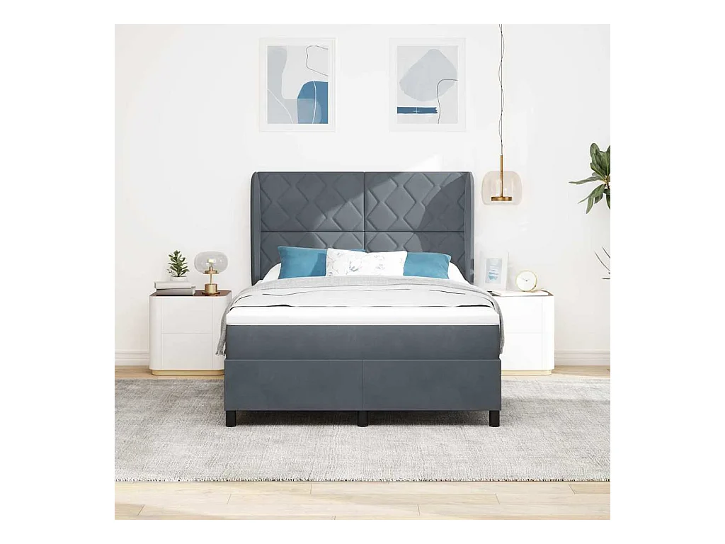 Cama Box com colchão Cinzento escuro 140 x 200 cm Veludo