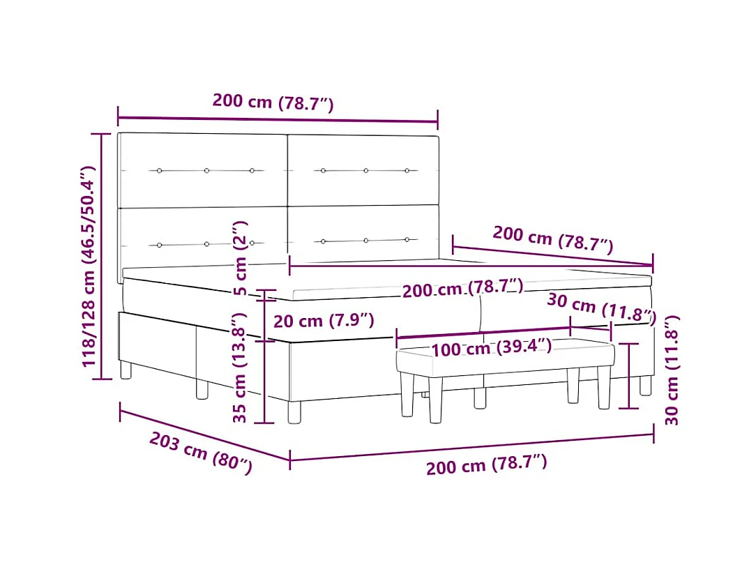 Cama Box com colchão Cinzento escuro 200 x 200 cm tecido