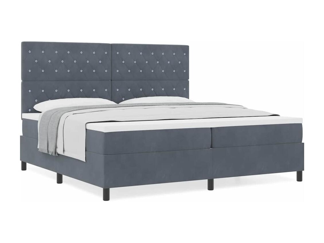 Cama Box com colchão Cinzento escuro 200 x 200 cm Veludo