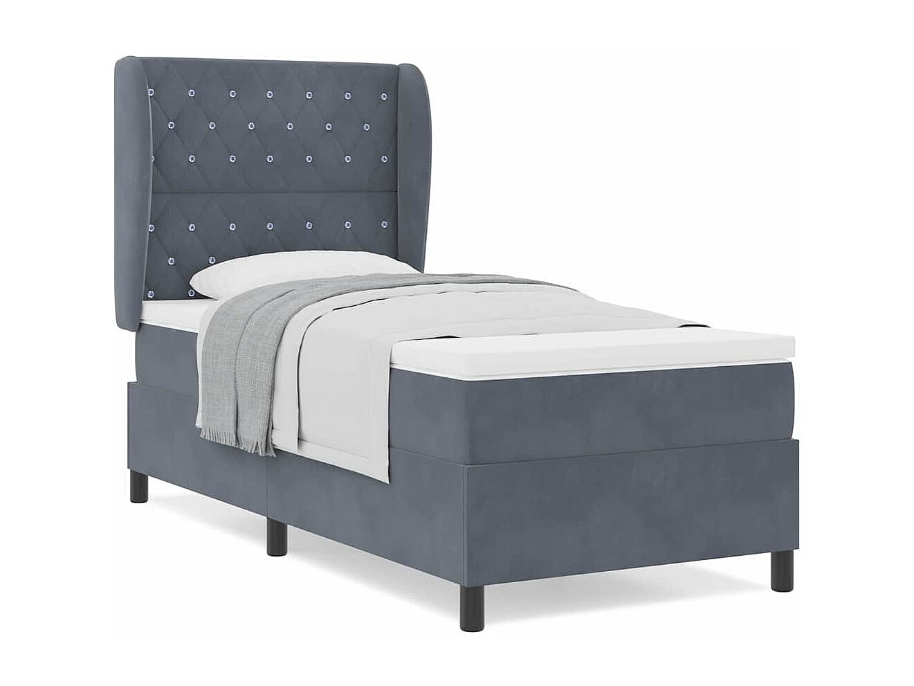 Cama Box com colchão Cinza Escuro 90 x 190 cm Veludo