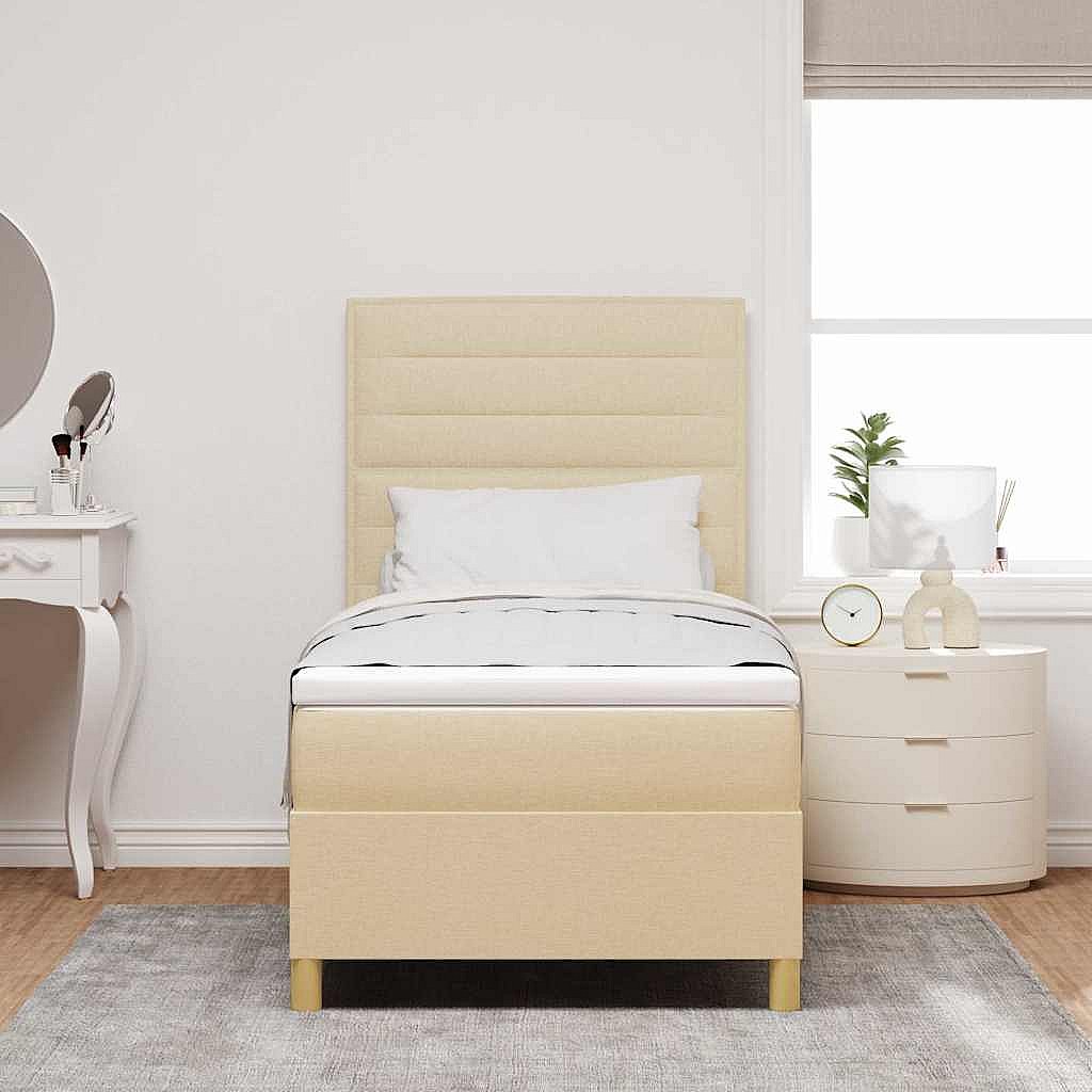 Cama box spring com colchão Creme 100 x 200 cm tecido