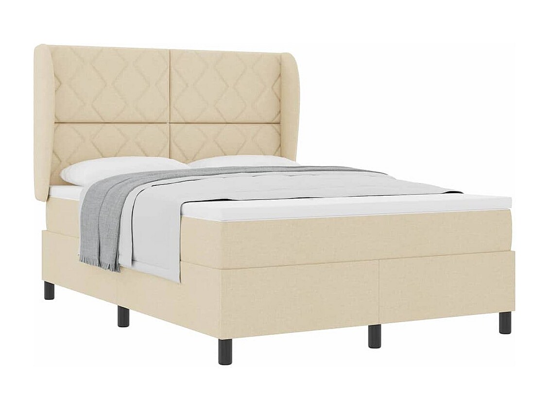 Cama Box com colchão com cabeceira Creme 160 x 200 cm tecido