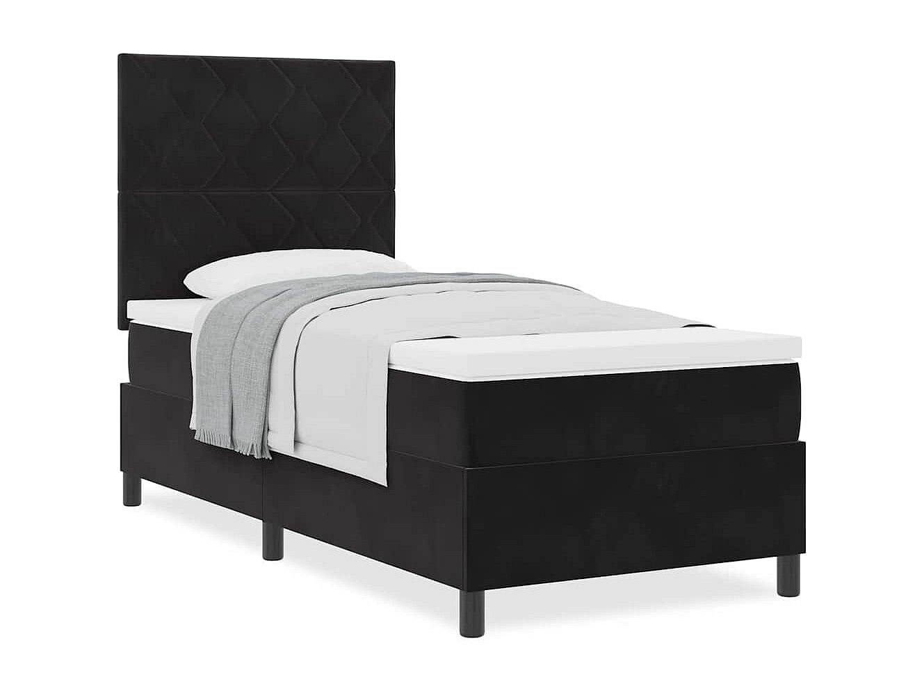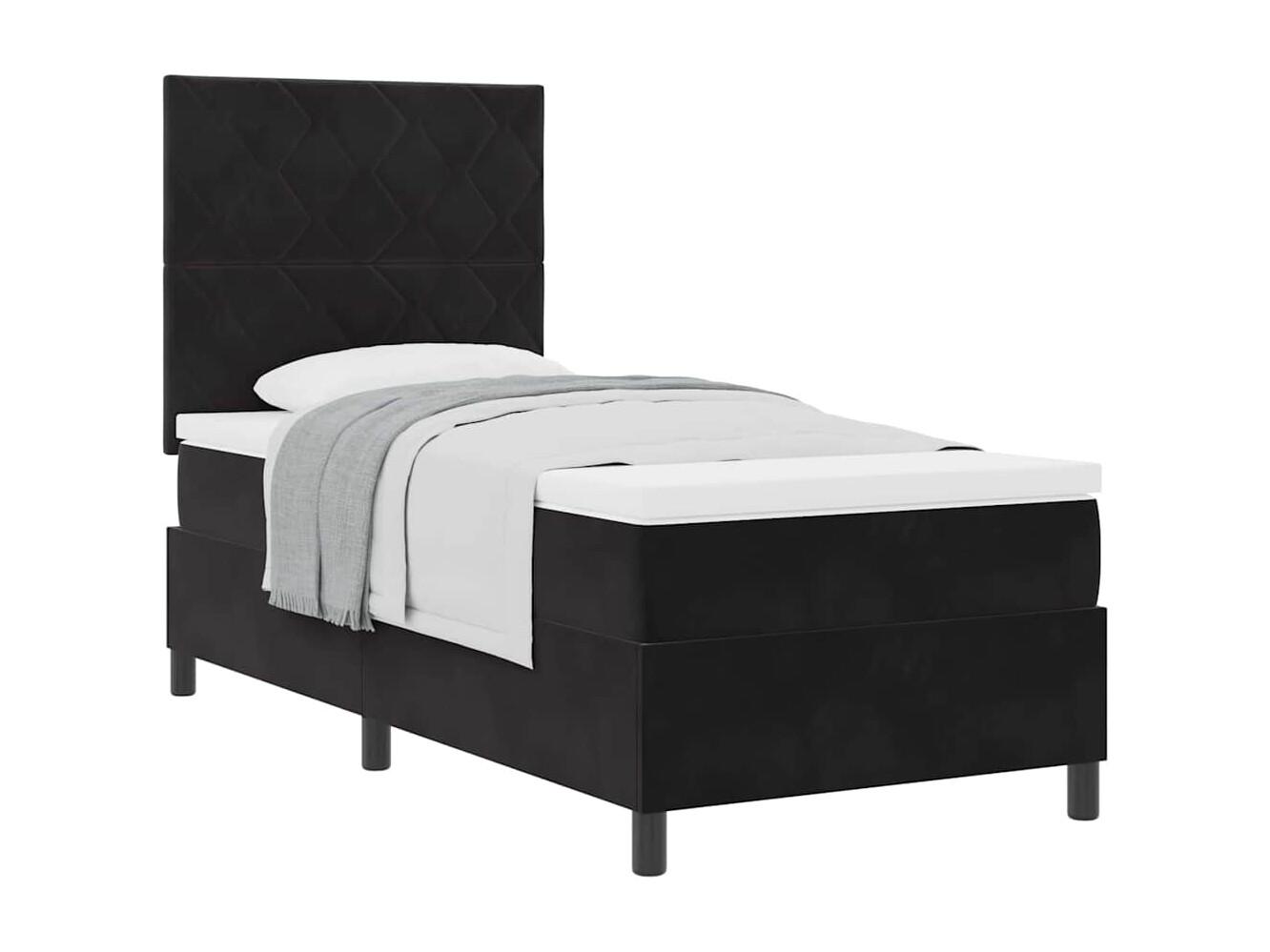Cama Box com colchão com cabeceira Preto 100 x 200 cm Veludo
