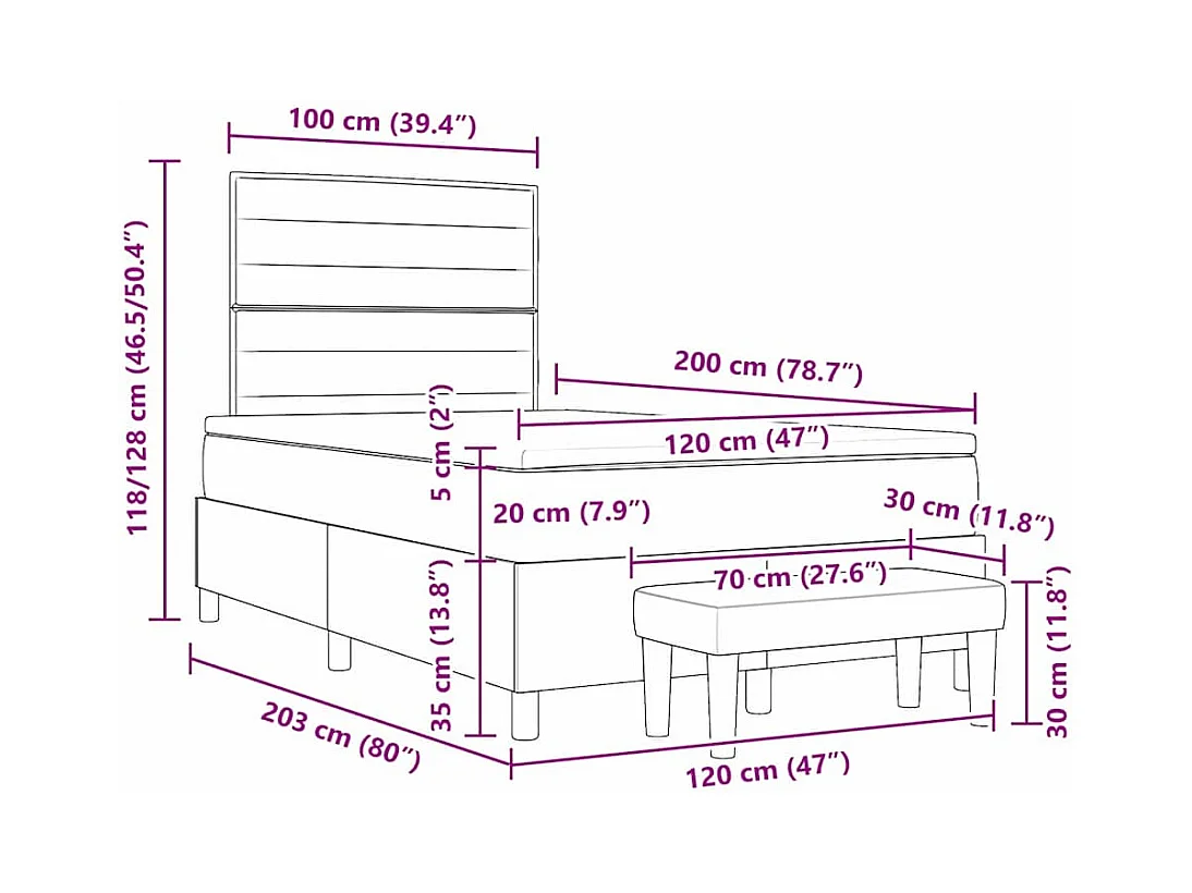 Cama Box com colchão com cabeceira Preto 120 x 200 cm tecido
