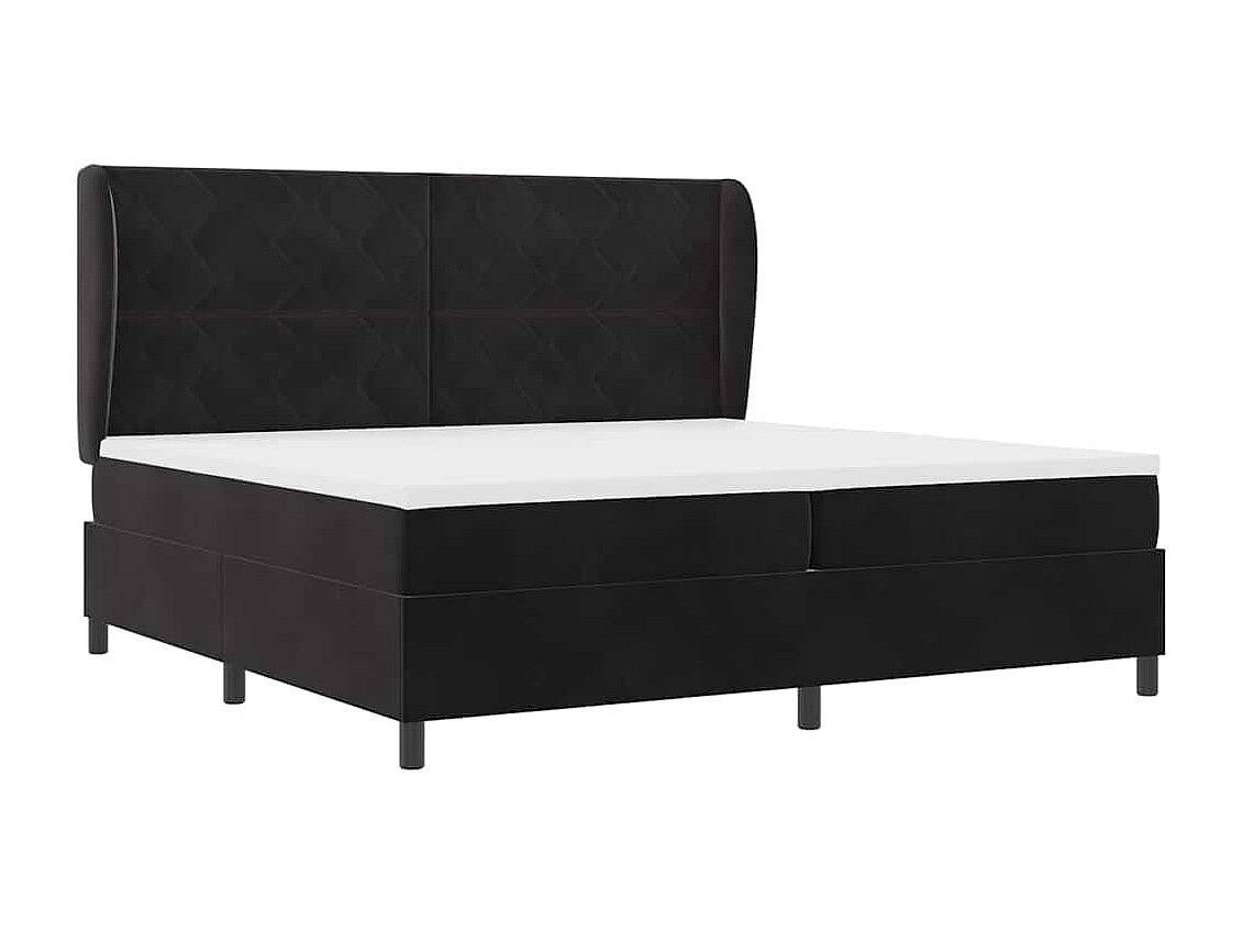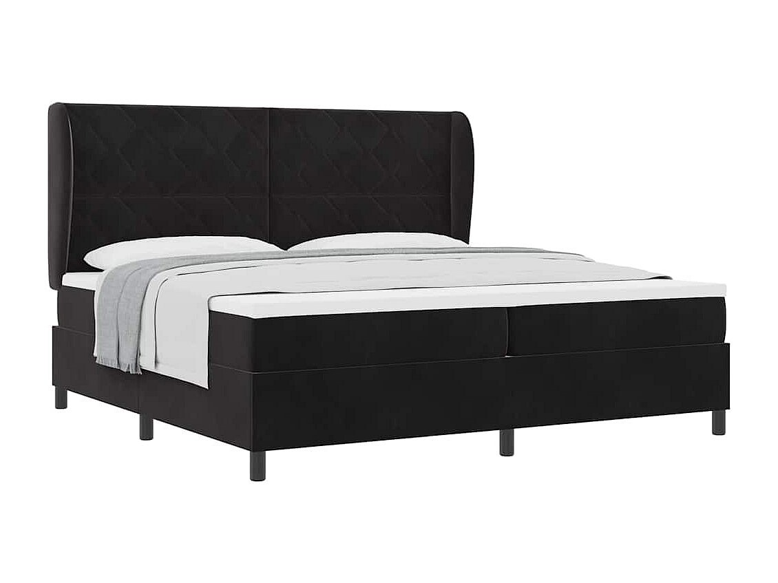 Cama Box com colchão com cabeceira Preto 200 x 200 cm Veludo