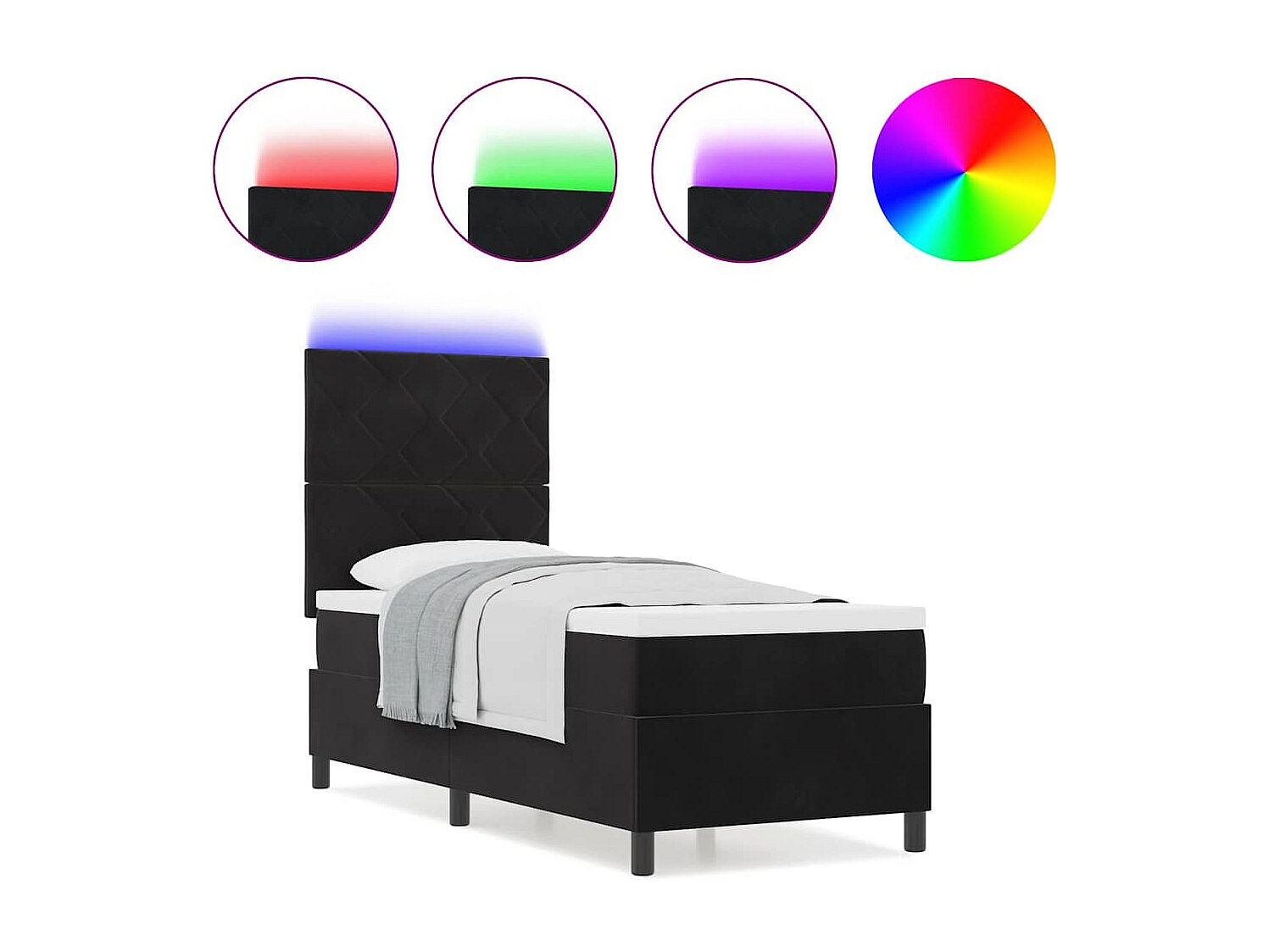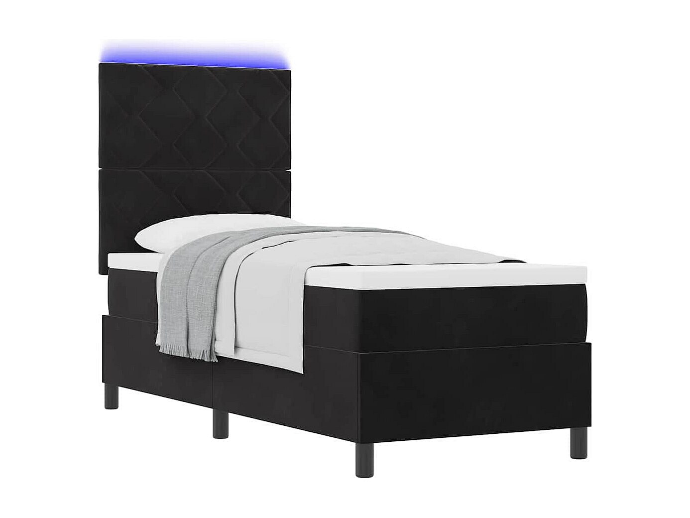 Cama Box com colchão com cabeceira Preto 80 x 200 cm Veludo