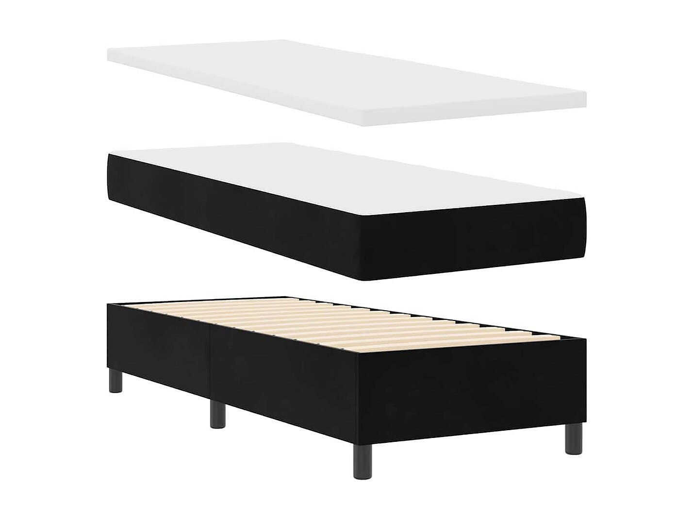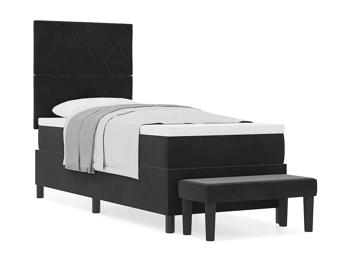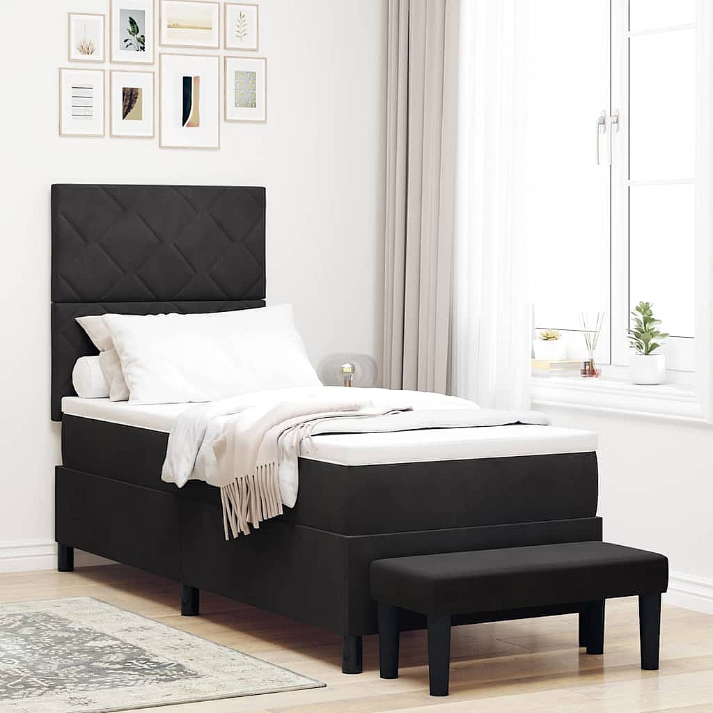 Cama Box com colchão com cabeceira Preto 80 x 200 cm Veludo