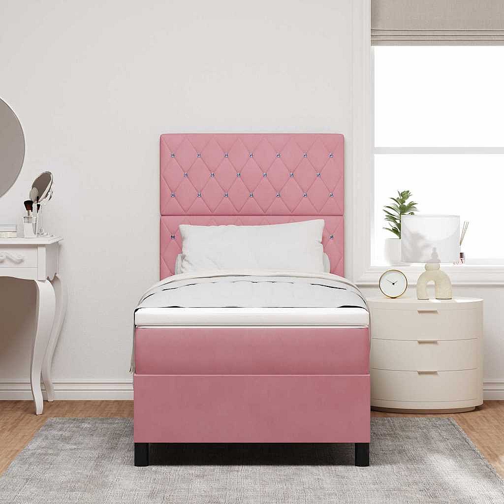 Cama Box com colchão com cabeceira Rosa 90 x 200 cm Veludo