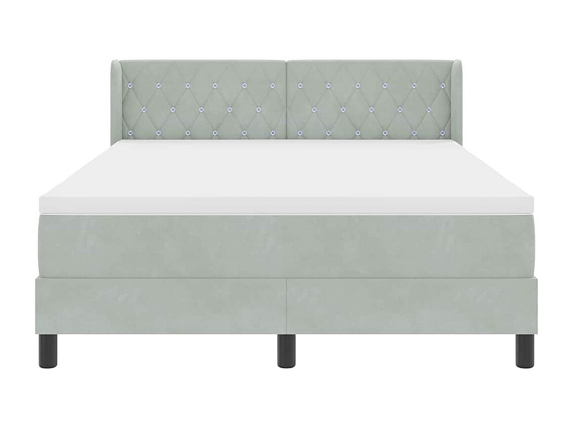 Cama box spring c/ colchão/LED 160x200 cm veludo cinzento-claro