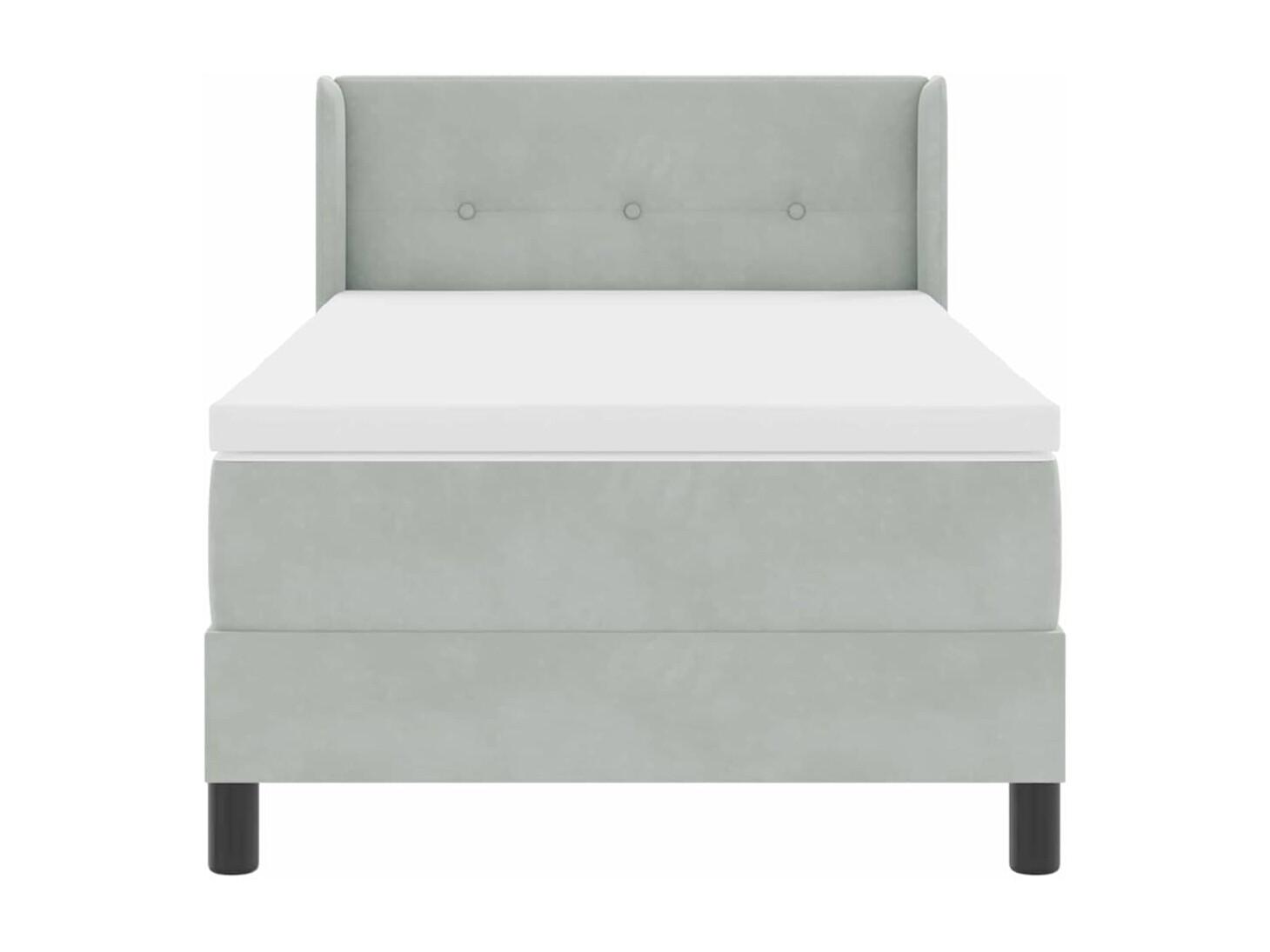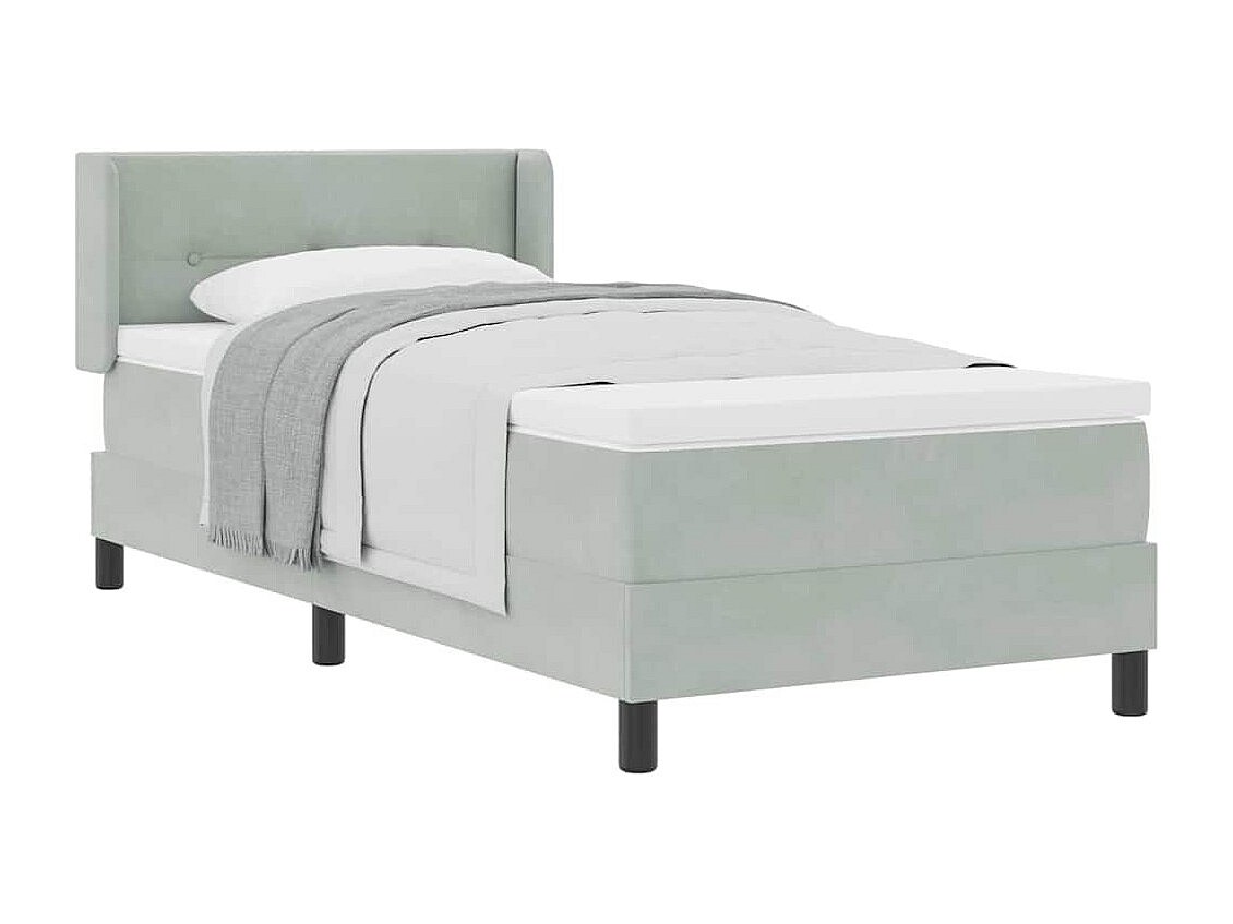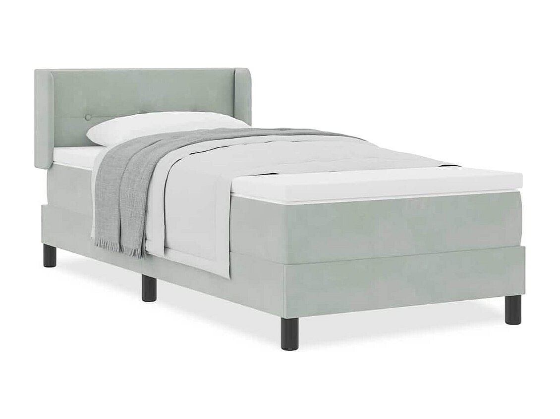 Cama Box com Colchão Preta 100x200 cm Veludo Cinzento-claro