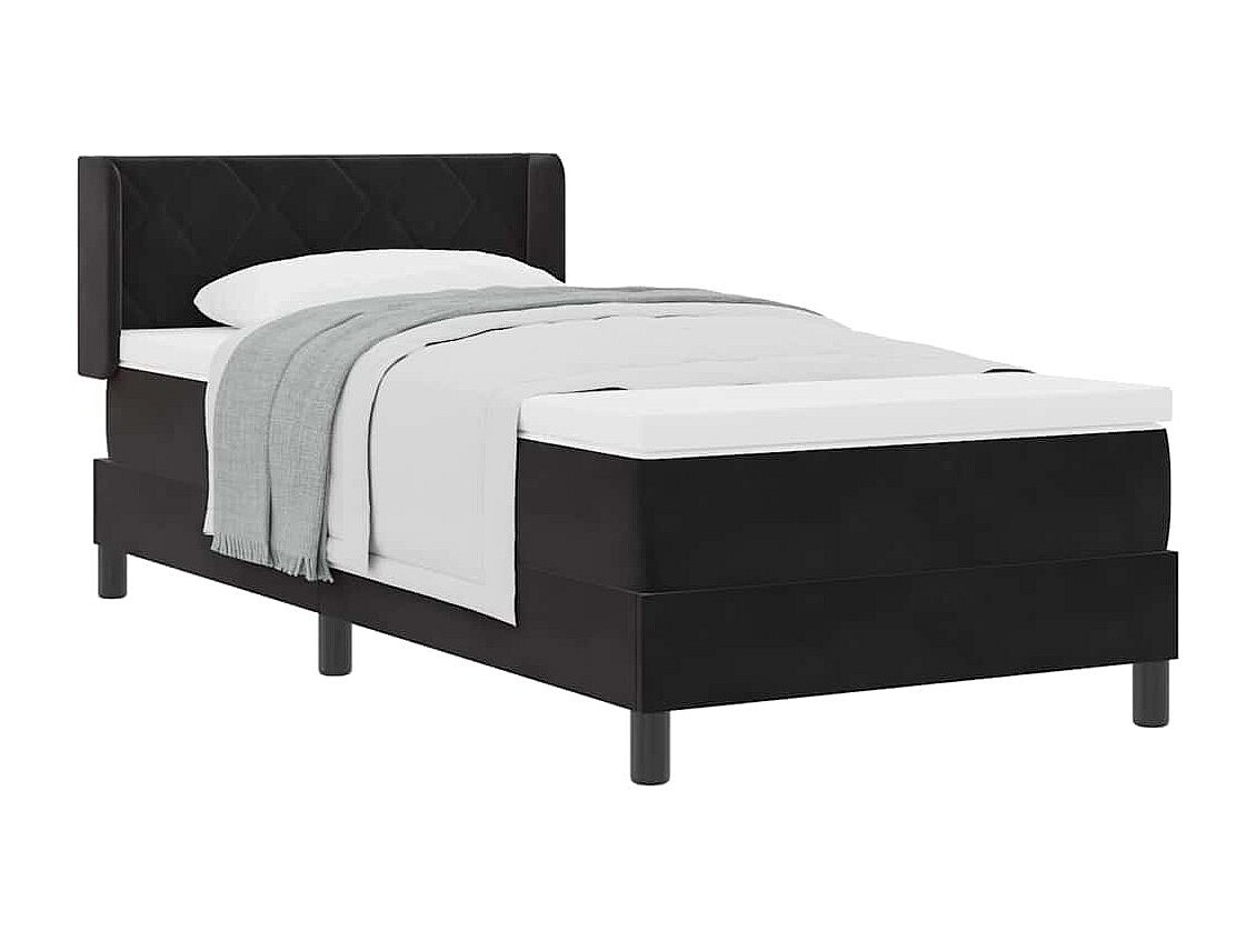 Cama Box com colchão com cabeceira Preto 100 x 200 cm Veludo