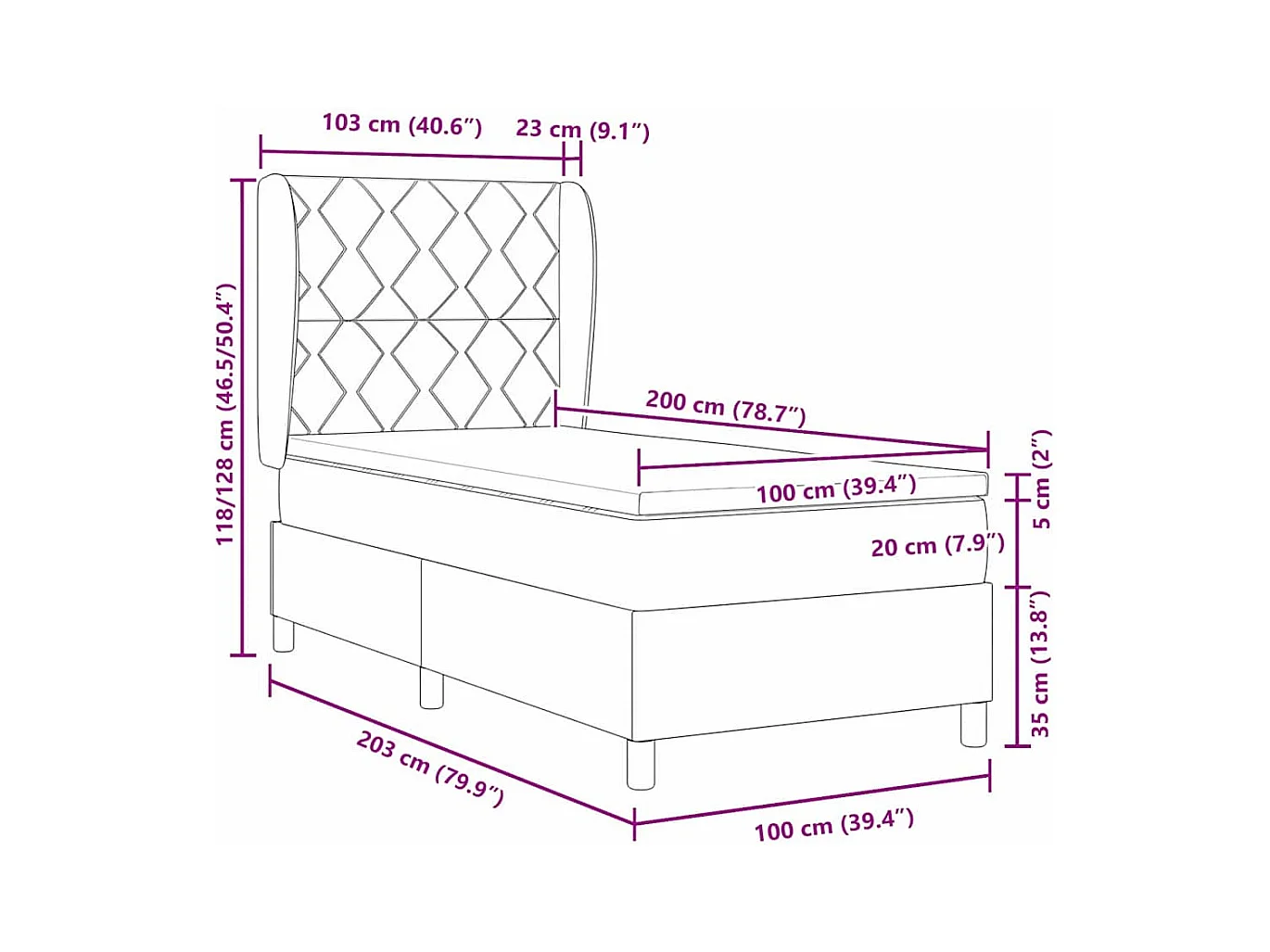 Cama Box com colchão Verde-escuro 100 x 200 cm Veludo