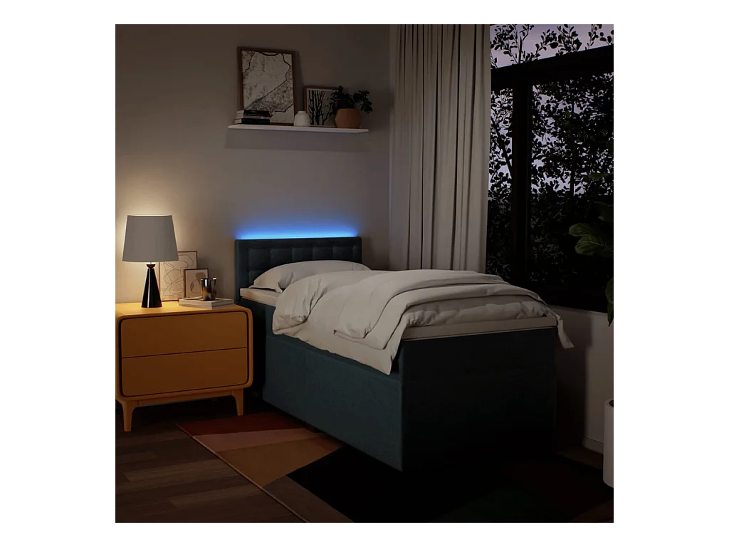 Cama box spring - 80x200 cm com molas/colchão tecido azul PT775053