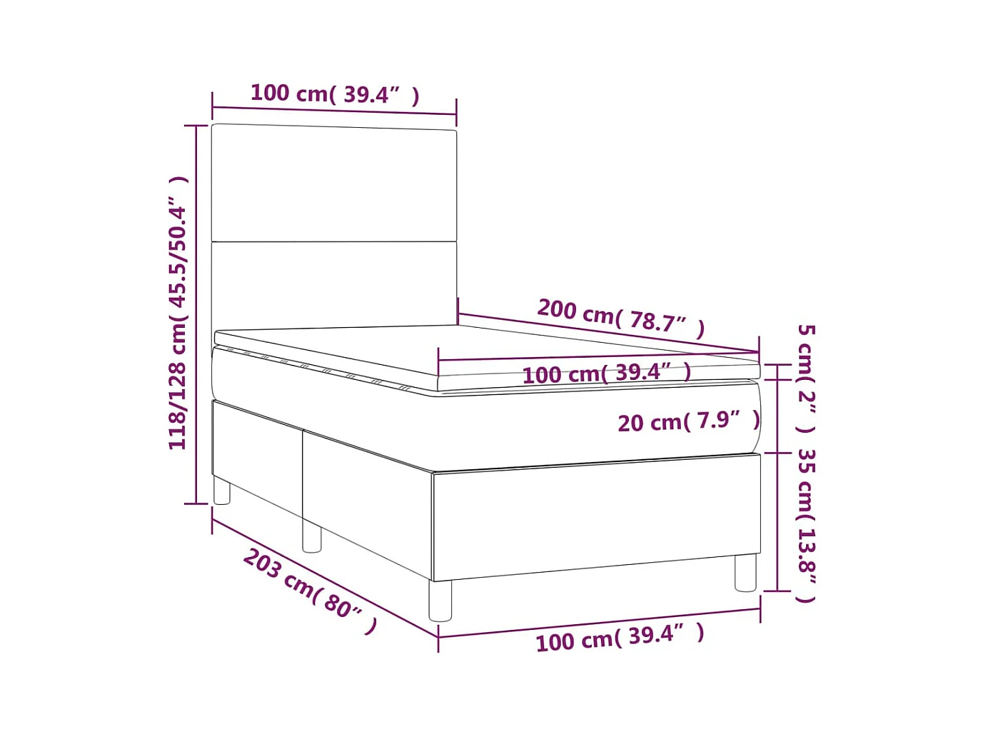 Cama box spring colchão/LED 100x200cm tecido cinza-acastanhado