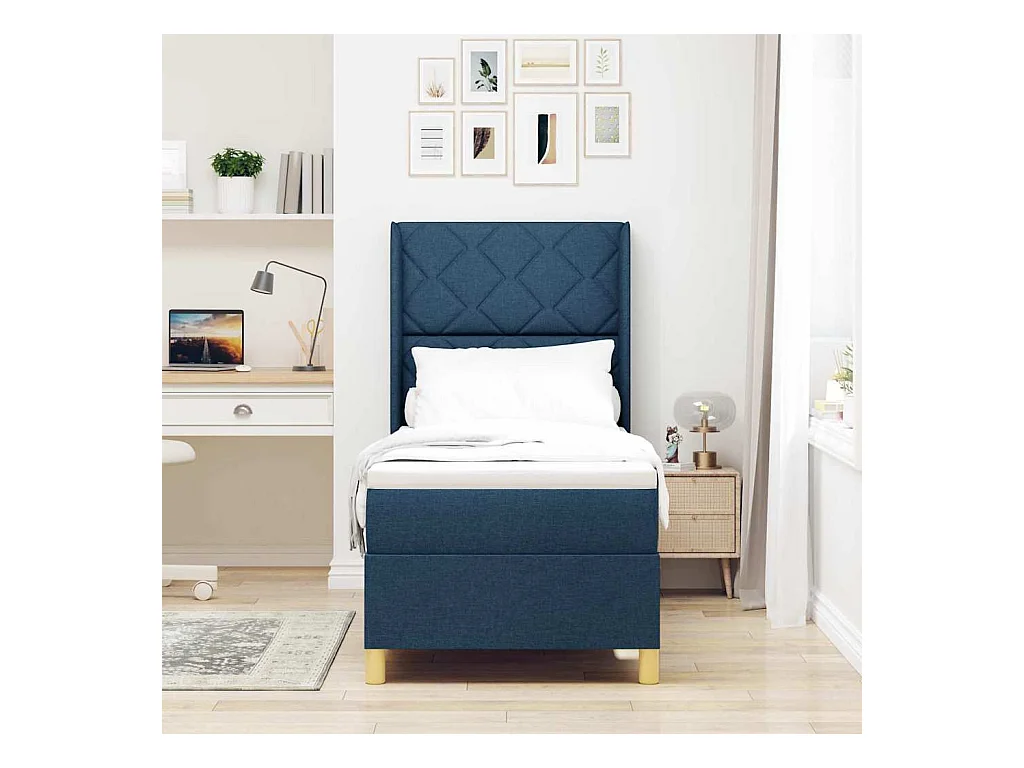 Cama Box Spring com colchão Azul 80 x 200 cm tecido