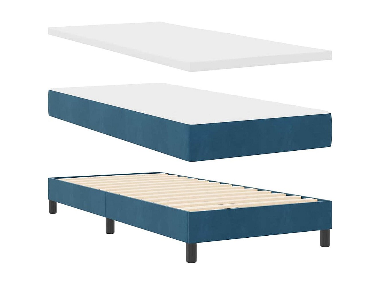 Cama Box com colchão Azul escuro 100 x 200 cm Veludo