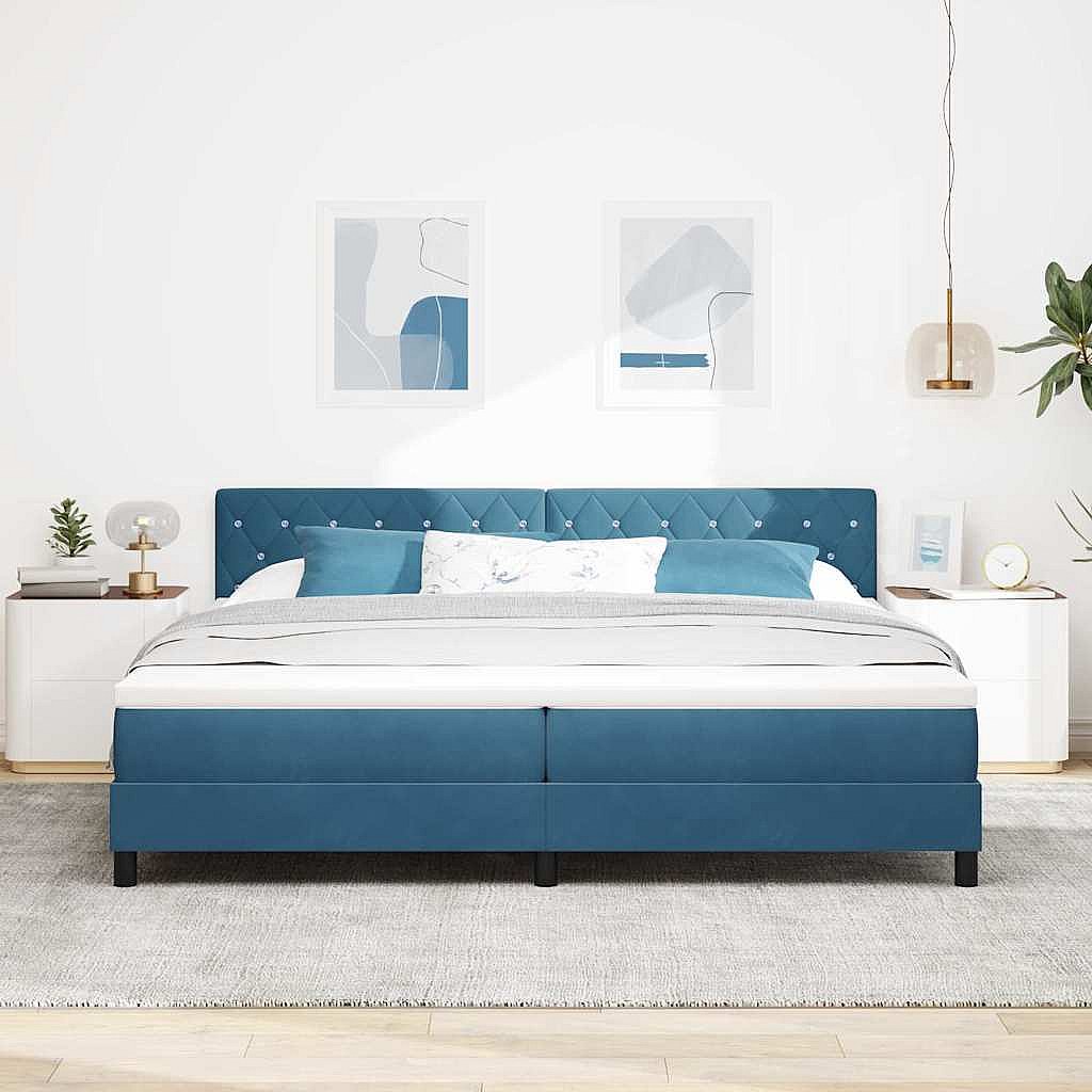 Cama Box com colchão Azul escuro 200 x 200 cm Veludo