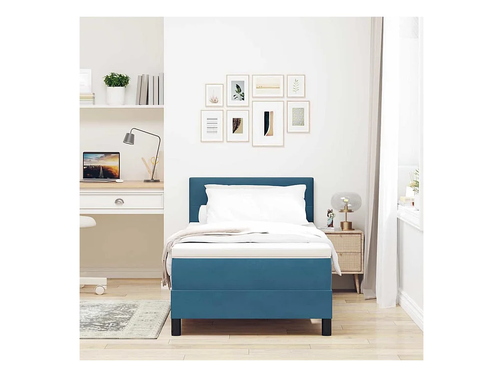 Cama Box Spring com Colchão Azul escuro 90 x 200 cm tecido