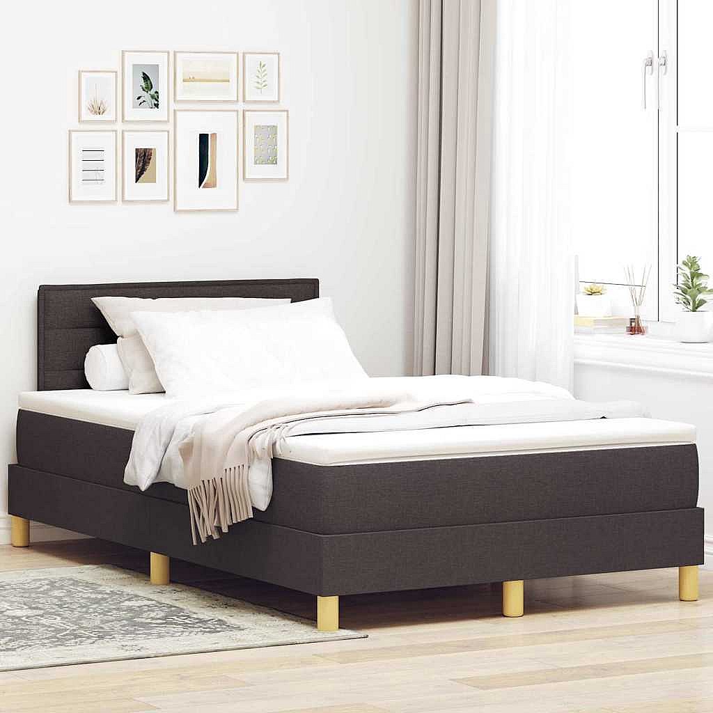 Cama boxspring com colchão 120x190 cm tecido castanho-escuro