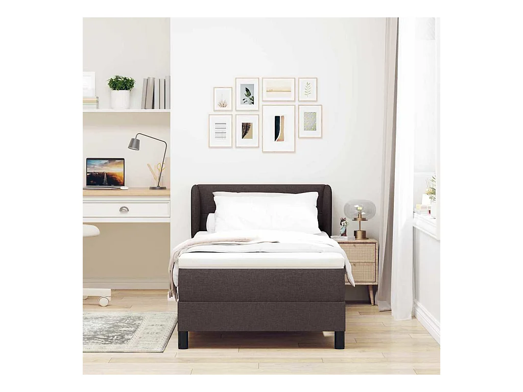 Cama box spring com colchão Castanho escuro 90 x 200 cm tecido