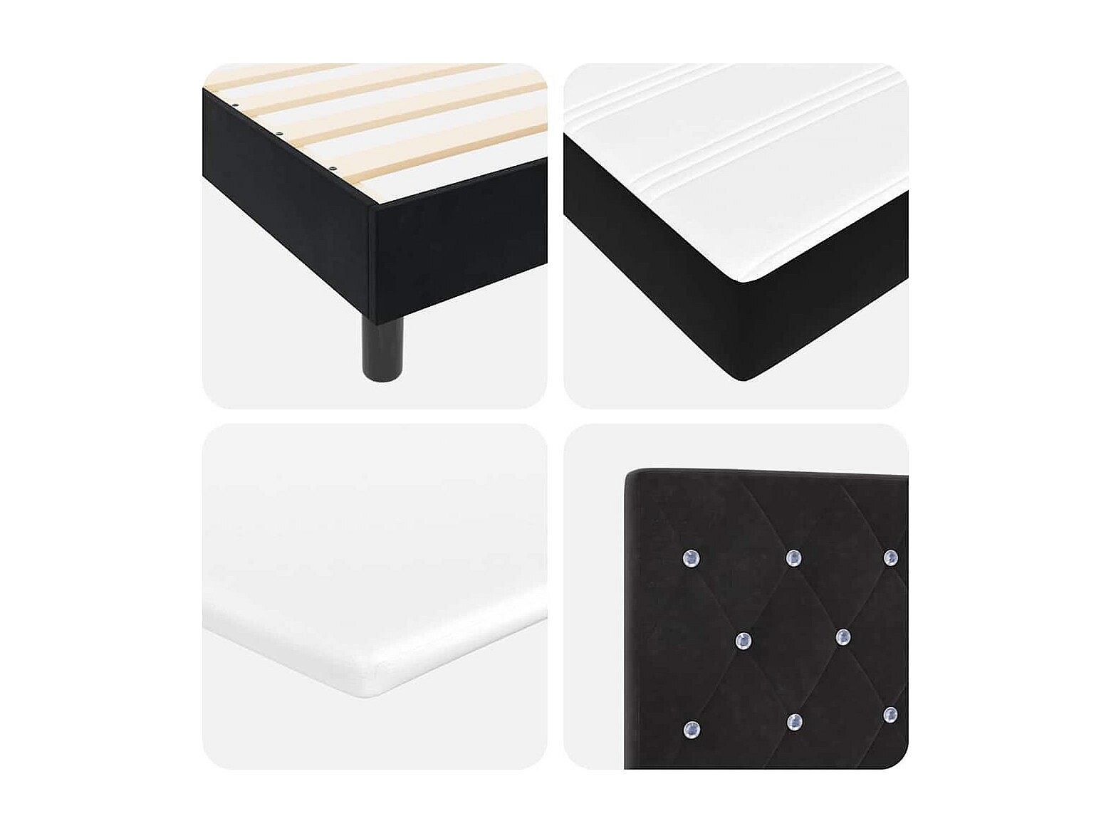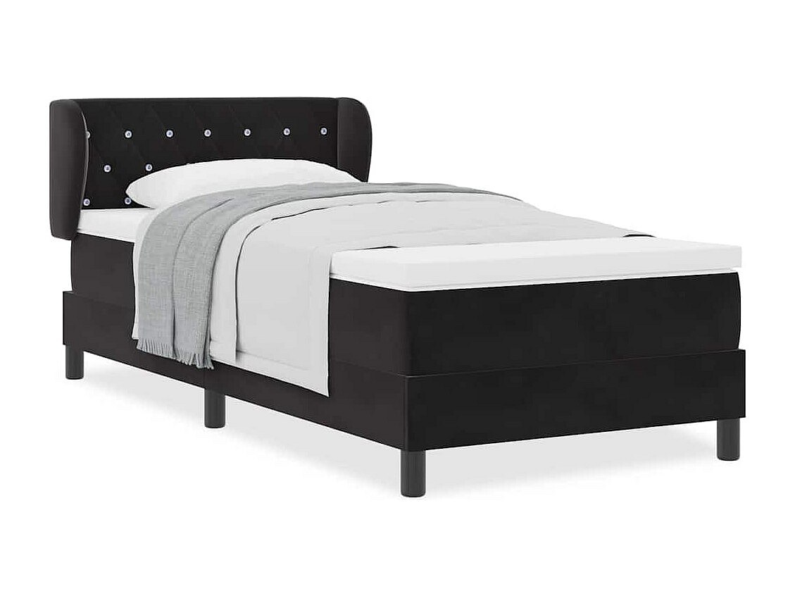 Cama Box com colchão com cabeceira Preto 100 x 200 cm Veludo