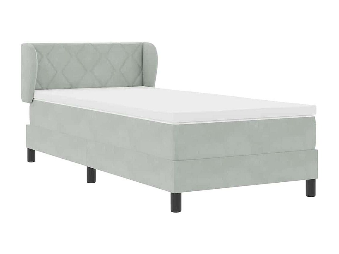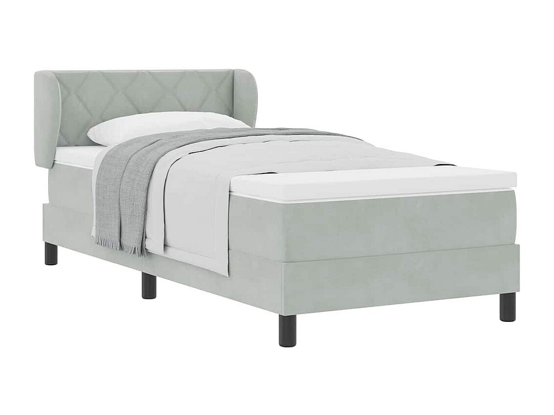 Cama Box com Colchão Preta 100x200 cm Veludo Cinzento-claro