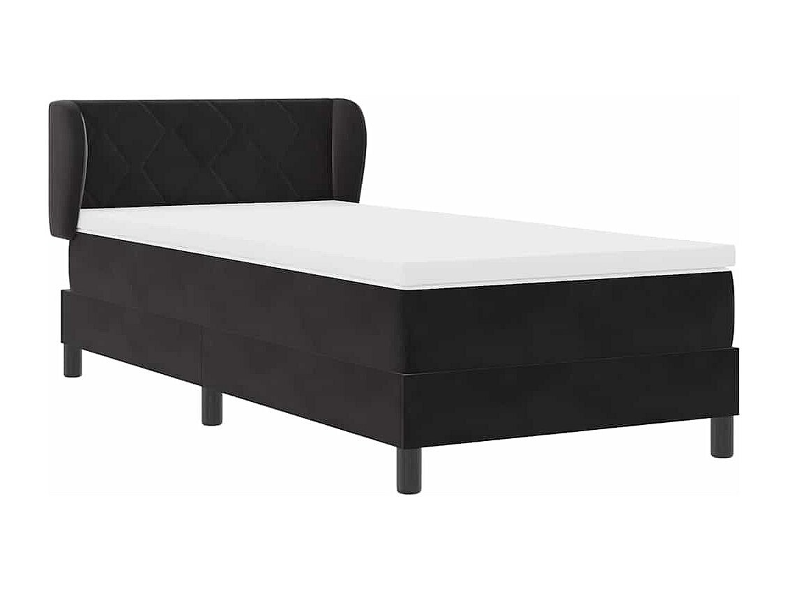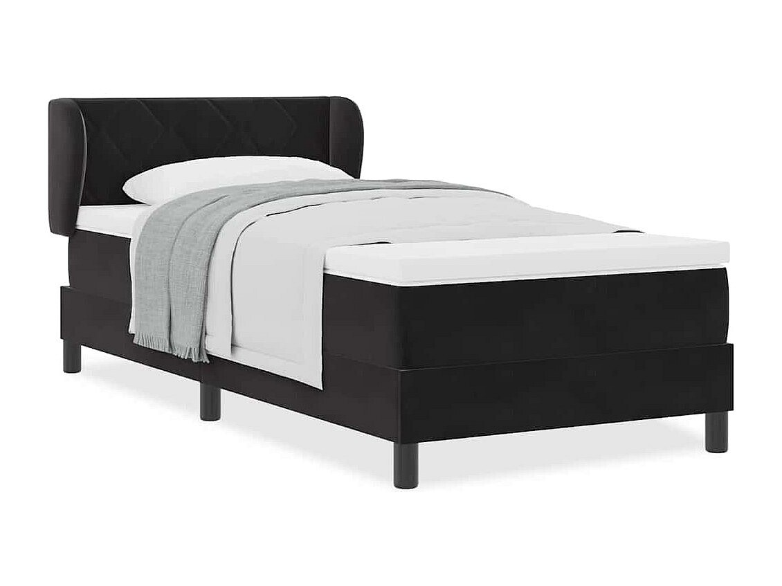 Cama Box com colchão com cabeceira Preto 100 x 200 cm Veludo