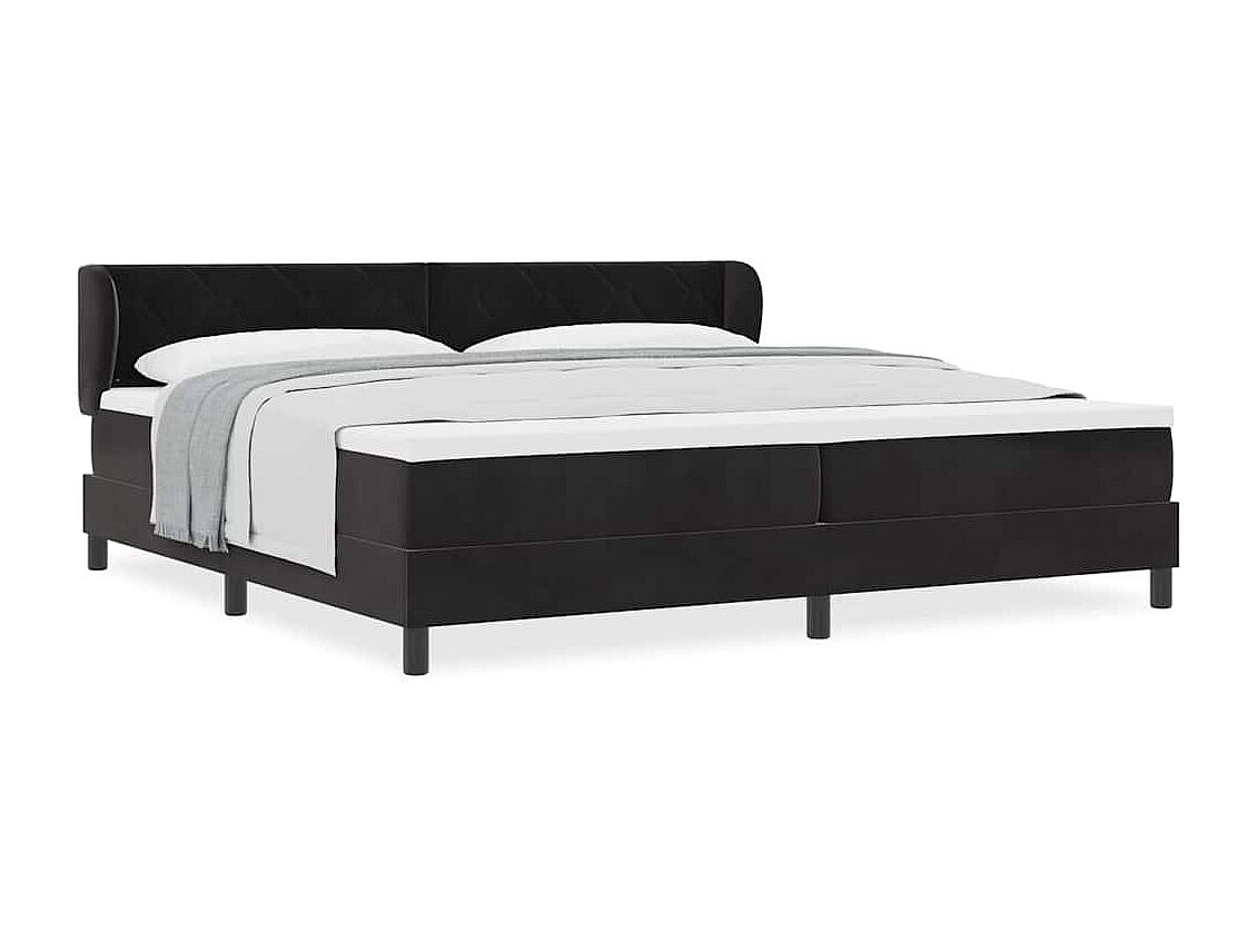 Cama Box com colchão com cabeceira Preto 200 x 200 cm Veludo