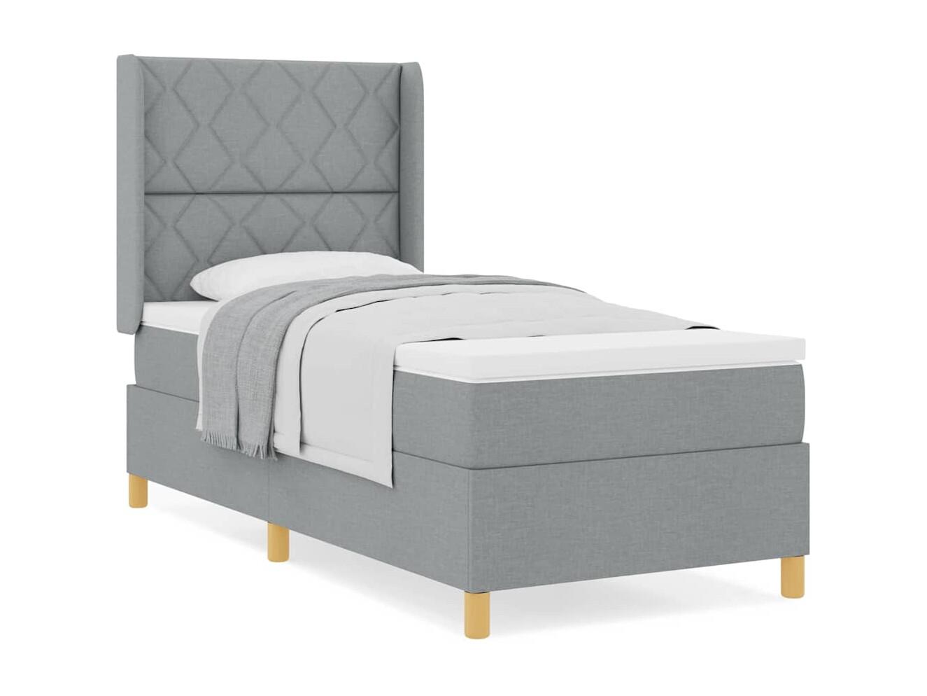 Estrutura cama otomana colchão 100x200 cm tecido cinzento claro