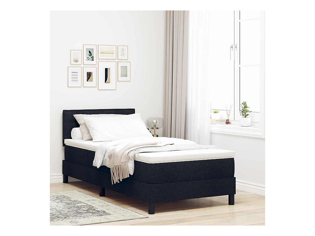 Cama box spring com colchão Preto 100 x 200 cm tecido