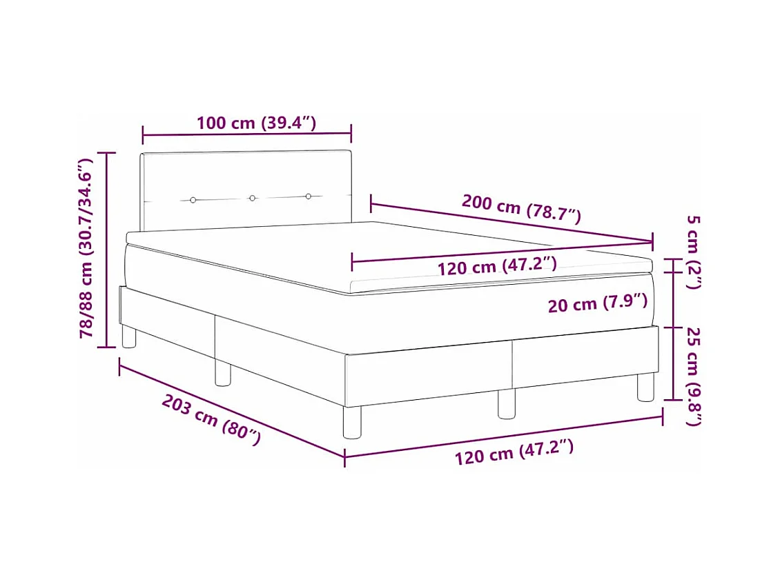 Cama Box com colchão com cabeceira Preto 120 x 200 cm tecido