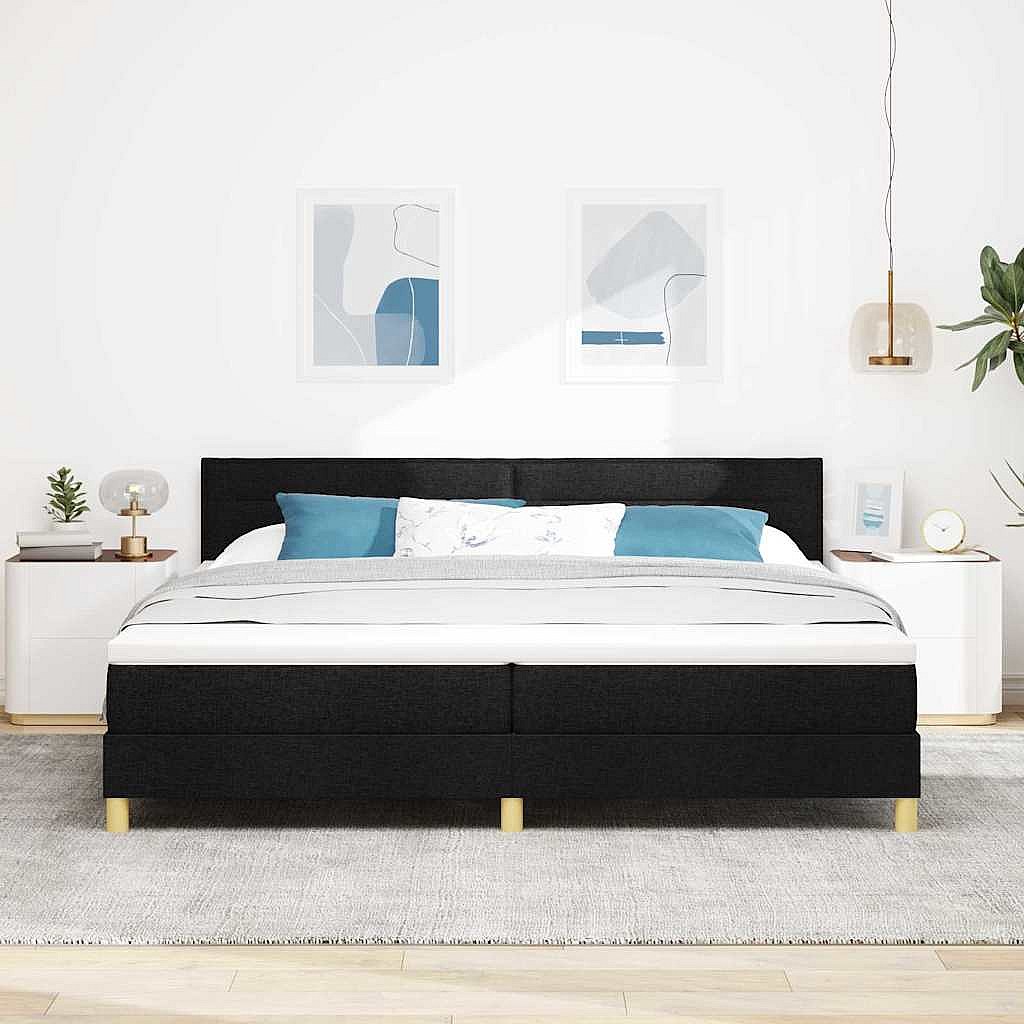 Cama box spring com colchão Preto 200 x 200 cm tecido