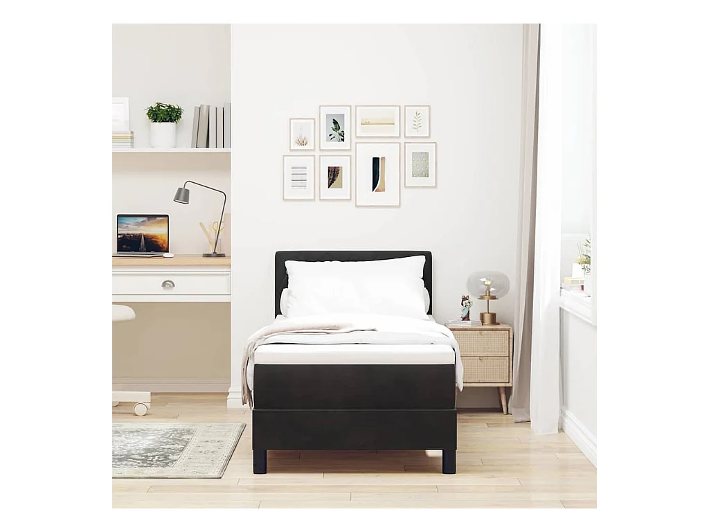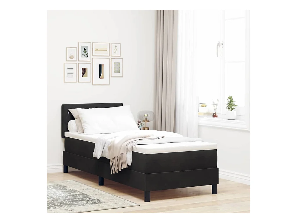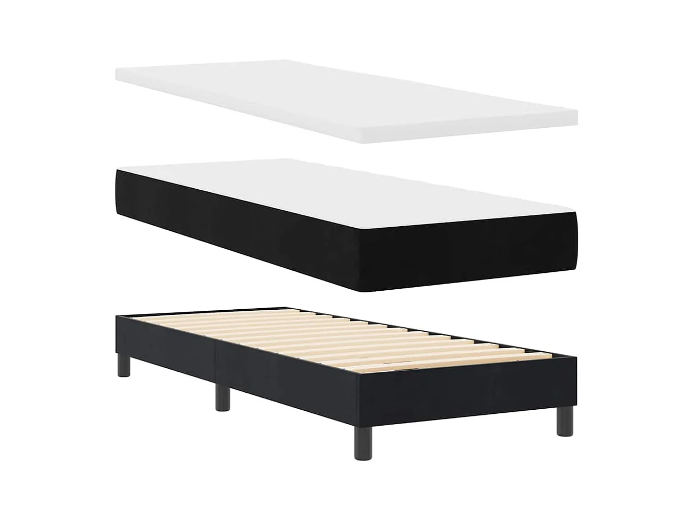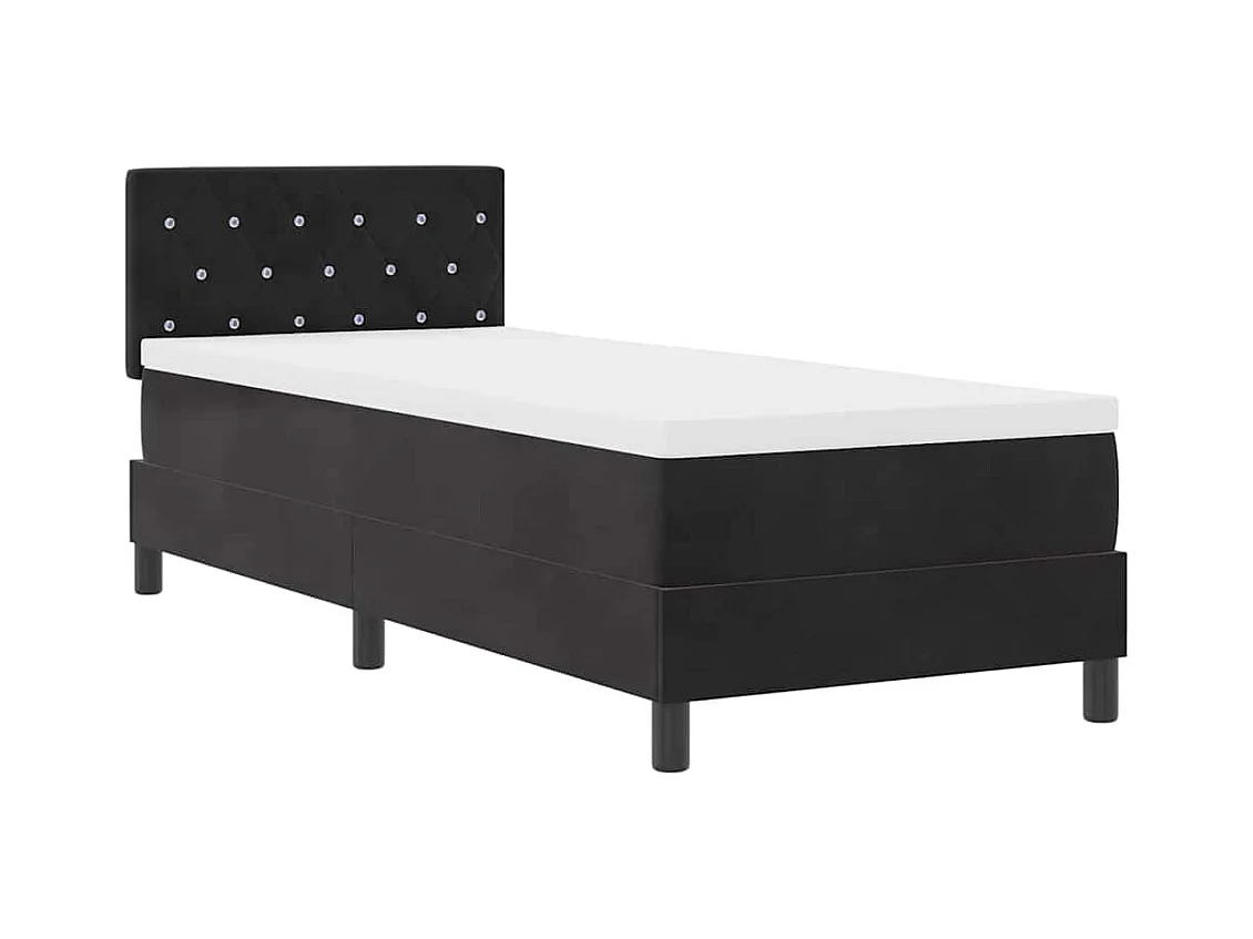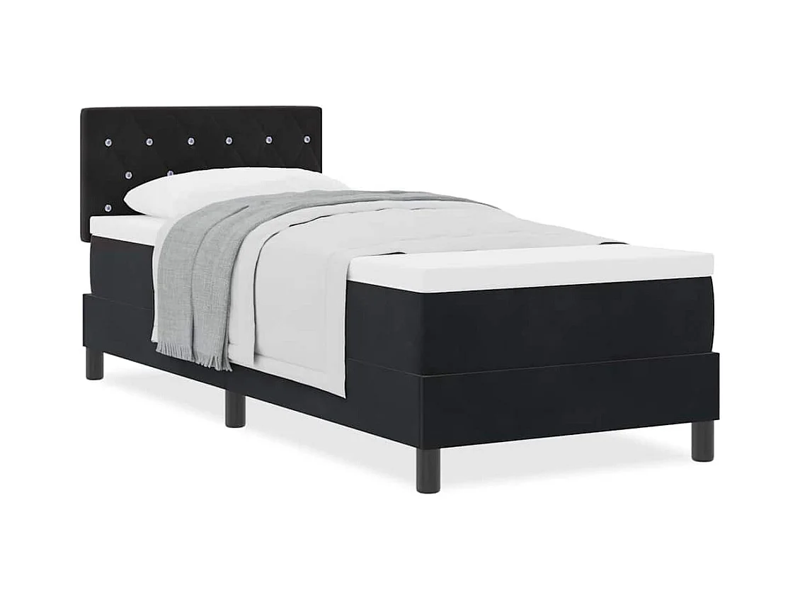 Cama Box com colchão com cabeceira Preto 80 x 200 cm Veludo