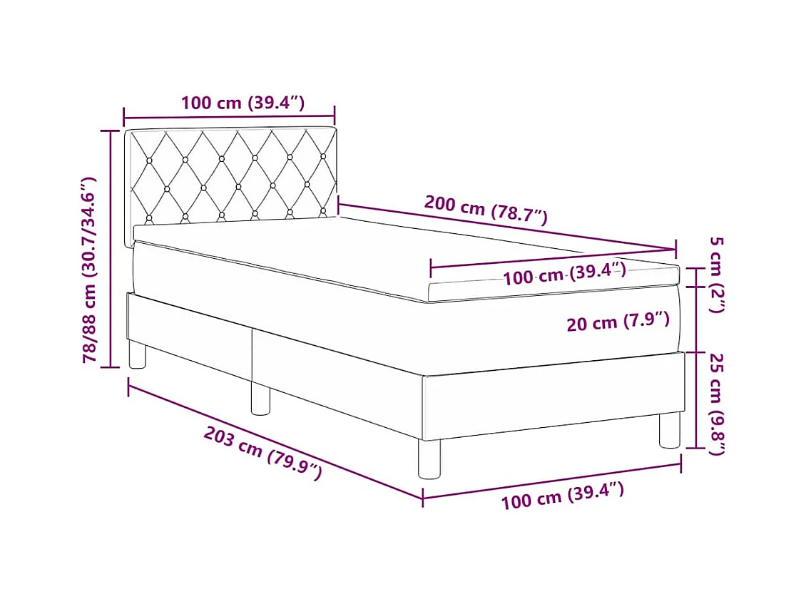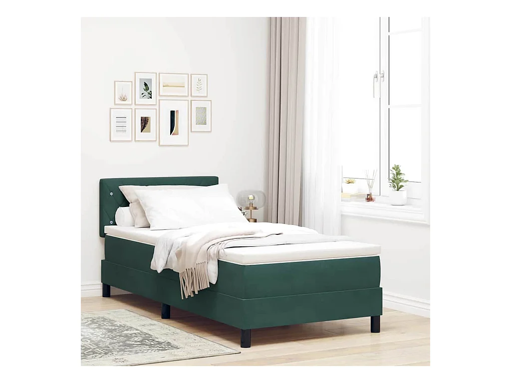 Cama Box Spring com Colchão Verde Escuro 100 x 200 cm tecido