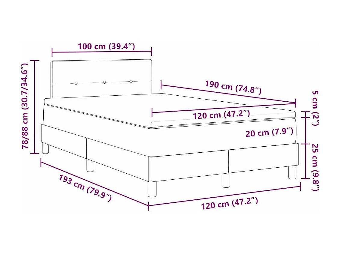 Cama Box com cabeceira Castanho escuro 120 x 190 cm tecido