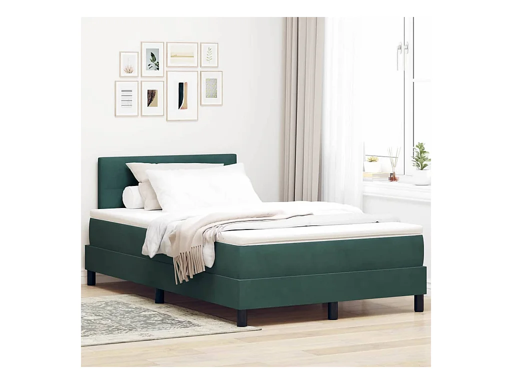 Cama Box Spring com Colchão Verde Escuro 120 x 190 cm tecido
