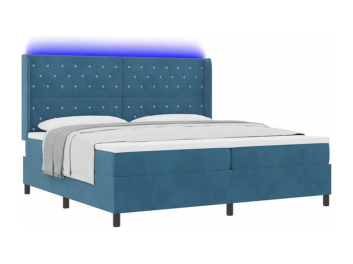 Cama Box Spring com LED e Colchão Azul 200 x 200 cm Veludo