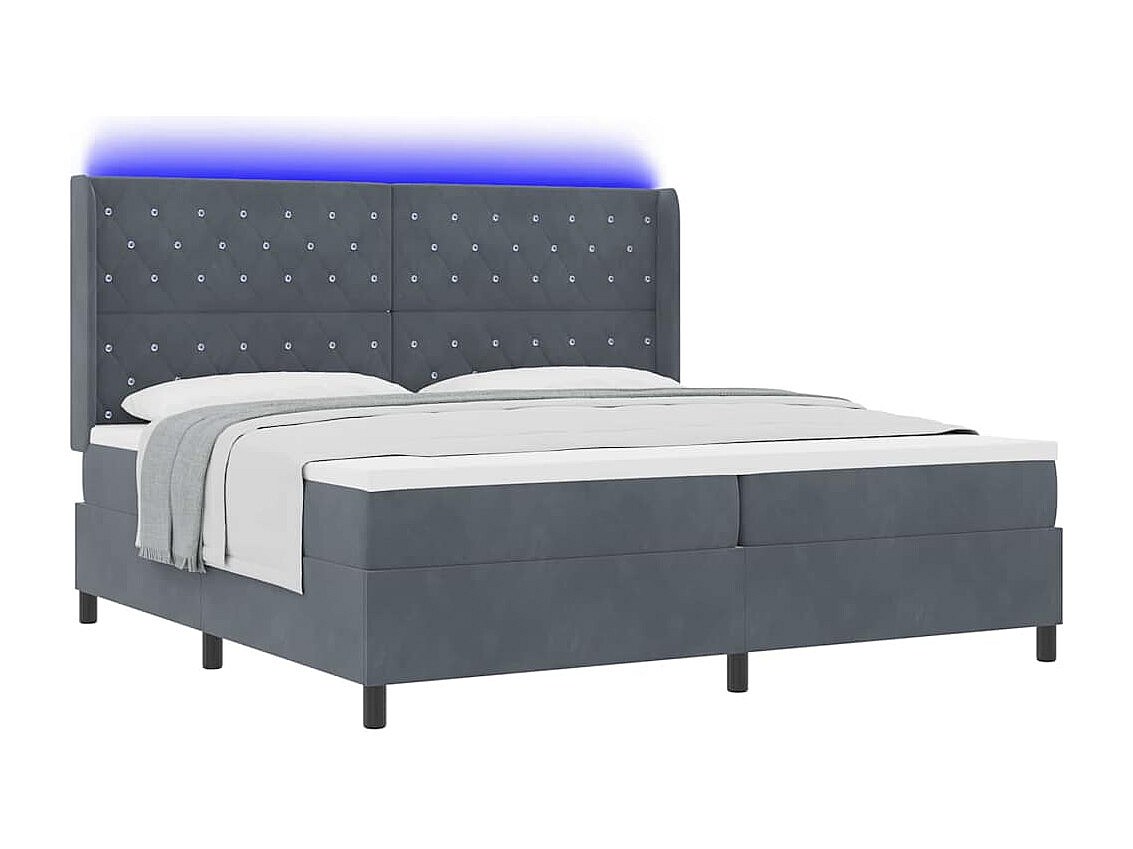 Cama Box Spring com LED e Colchão Cinza Escuro 200 x 200 cm