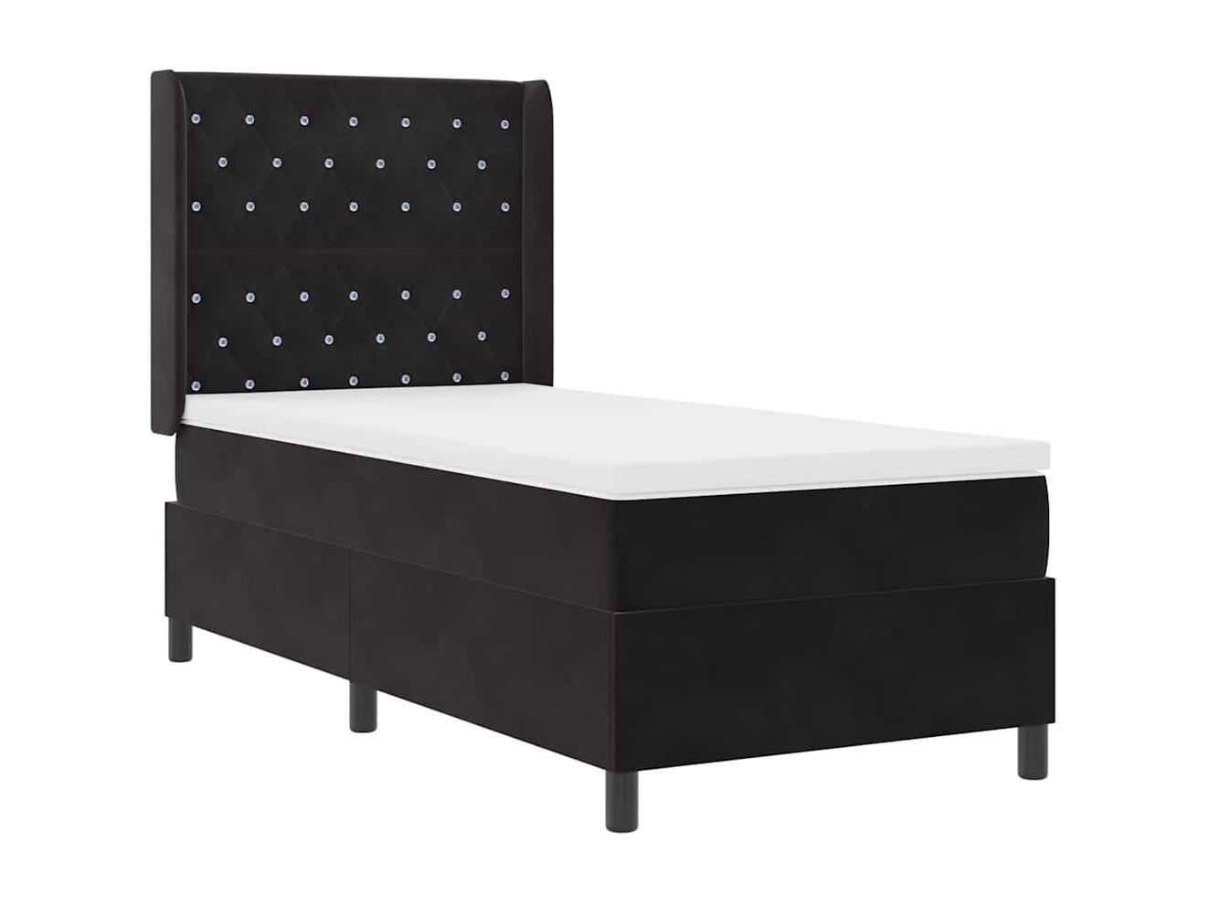 Cama Box com colchão com cabeceira Preto 100 x 200 cm Veludo