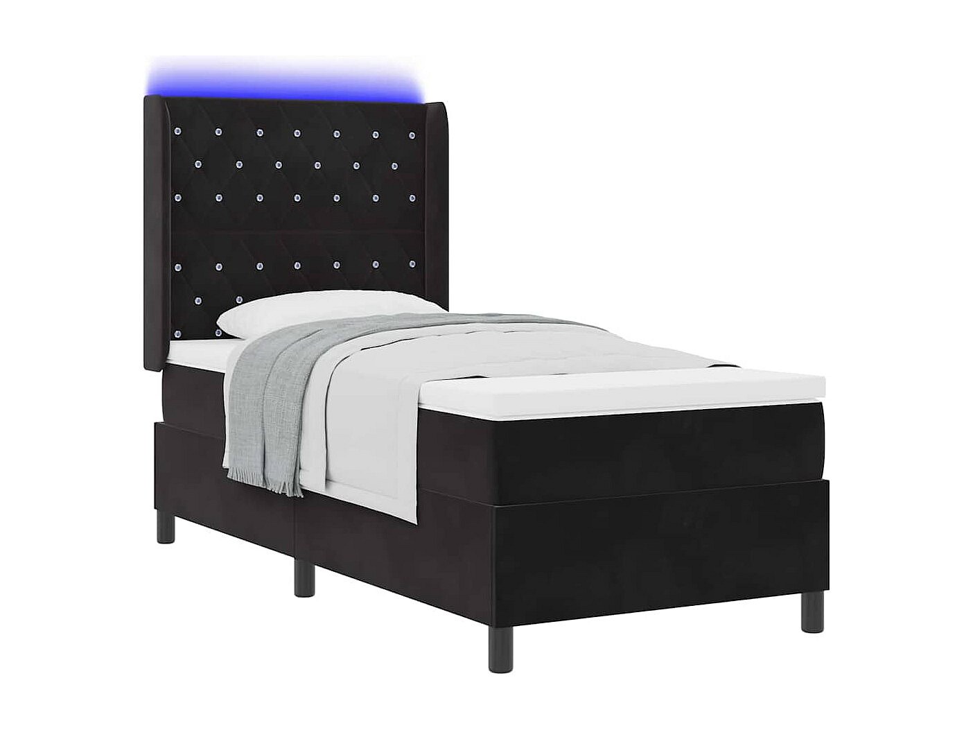 Cama Box Spring com LED e Colchão Preto 100 x 200 cm Veludo
