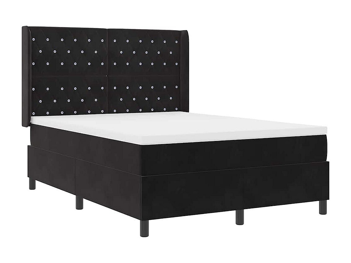 Cama Box com colchão com cabeceira Preto 160 x 200 cm Veludo