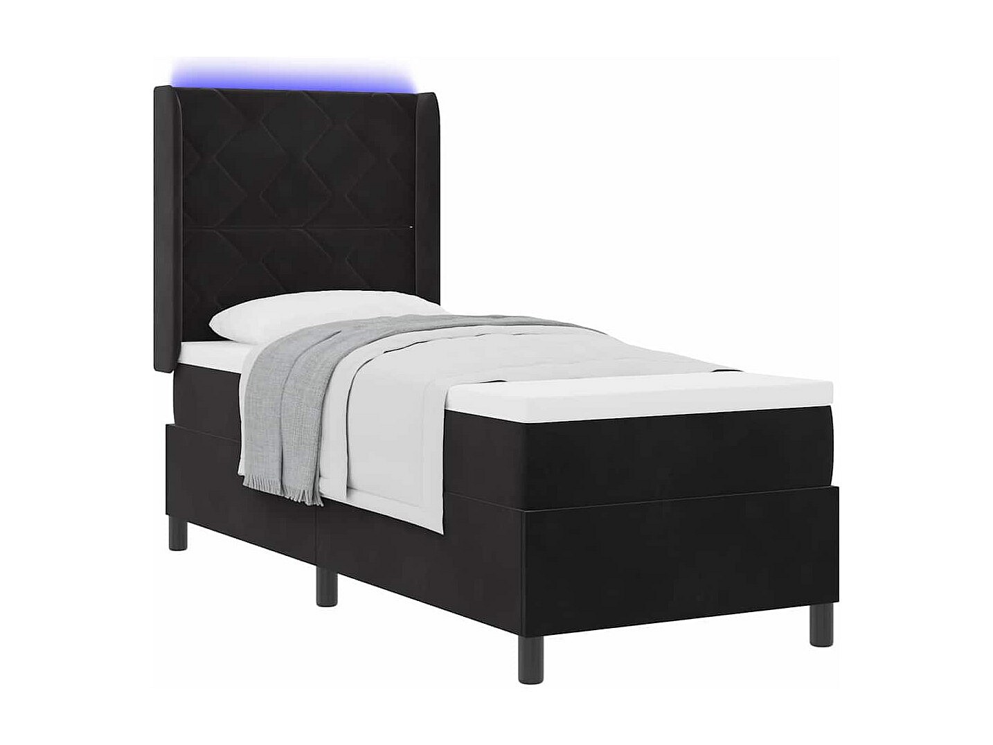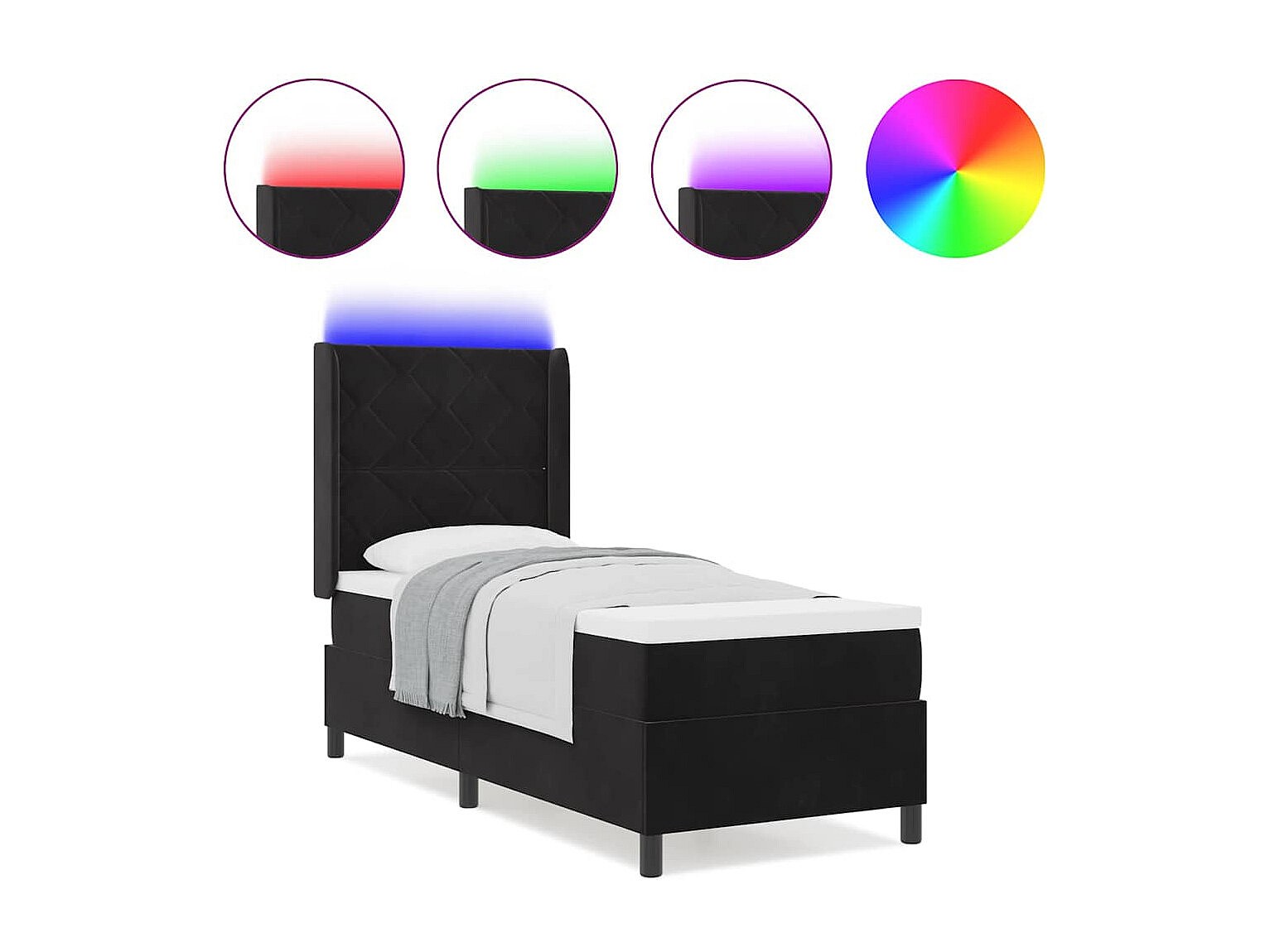 Cama Box Spring com LED e Colchão Preto 80 x 200 cm Veludo