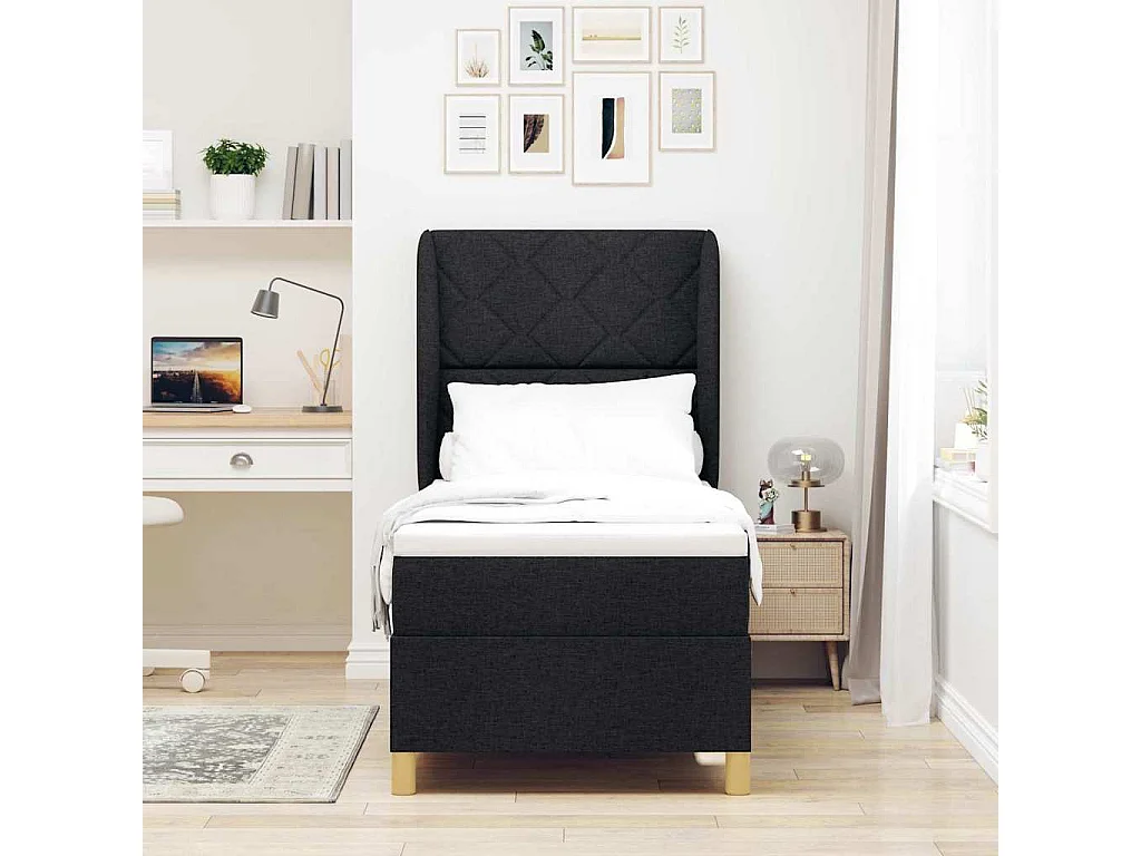 Cama Box Springs com Colchão Cinza Escuro 90x190 cm Preto