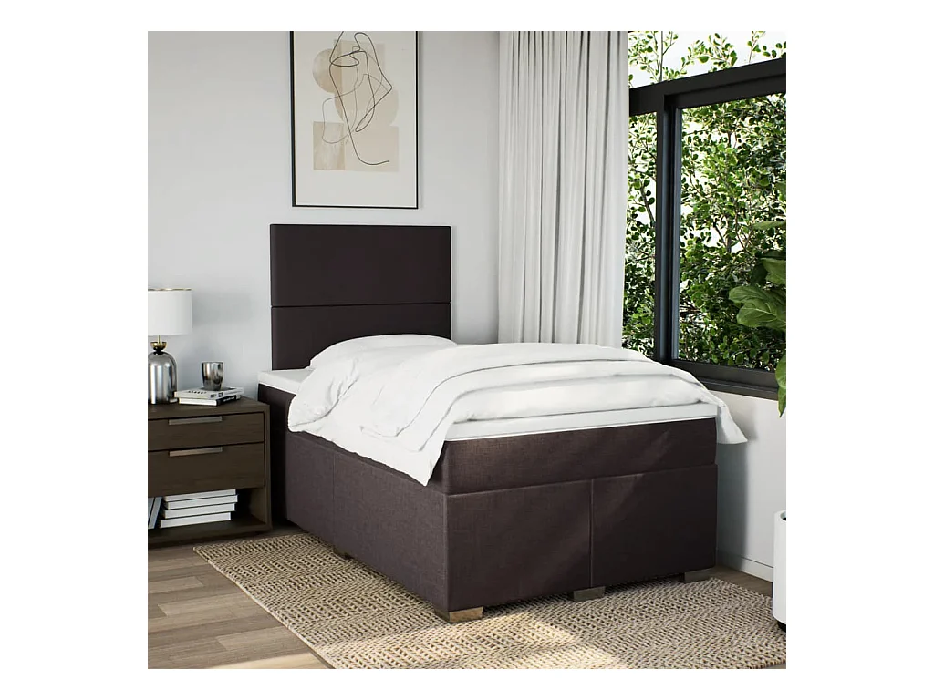 Cama boxspring com colchão 120x190 cm tecido castanho-escuro