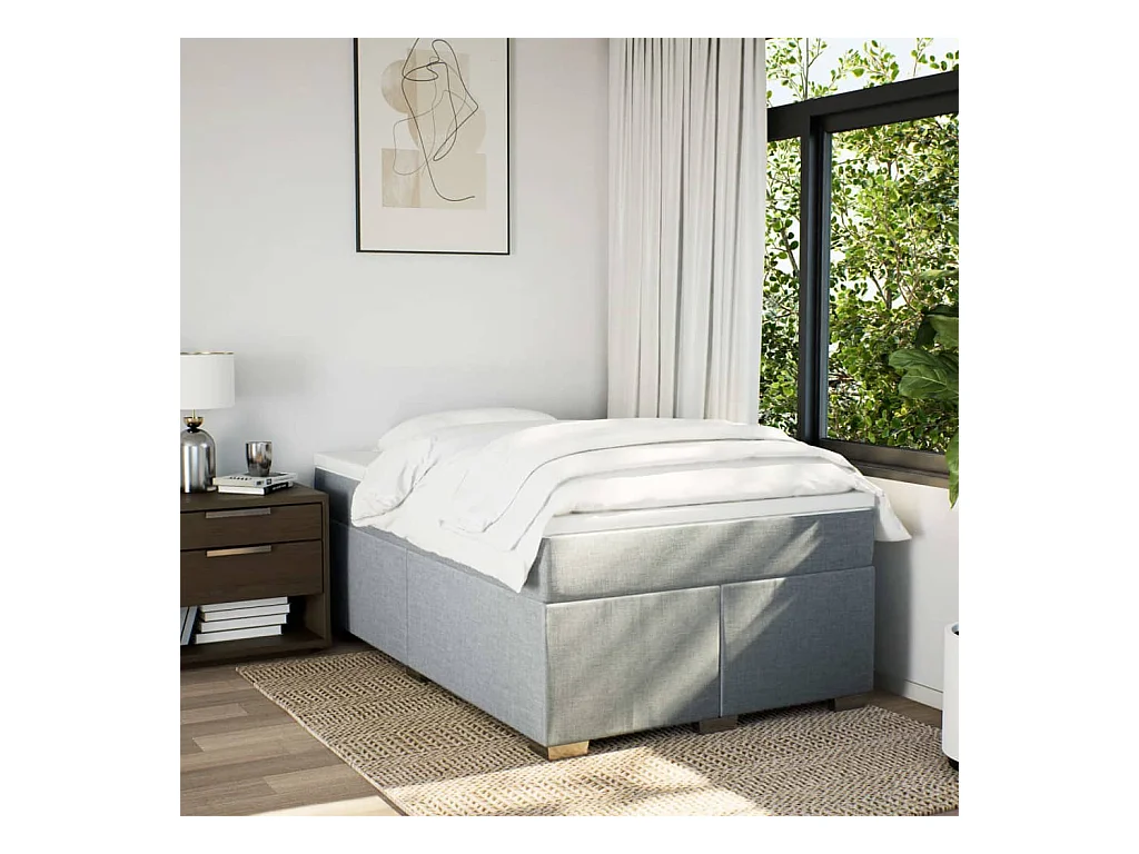 Cama boxspring com colchão 120x190 cm tecido cinzento-claro